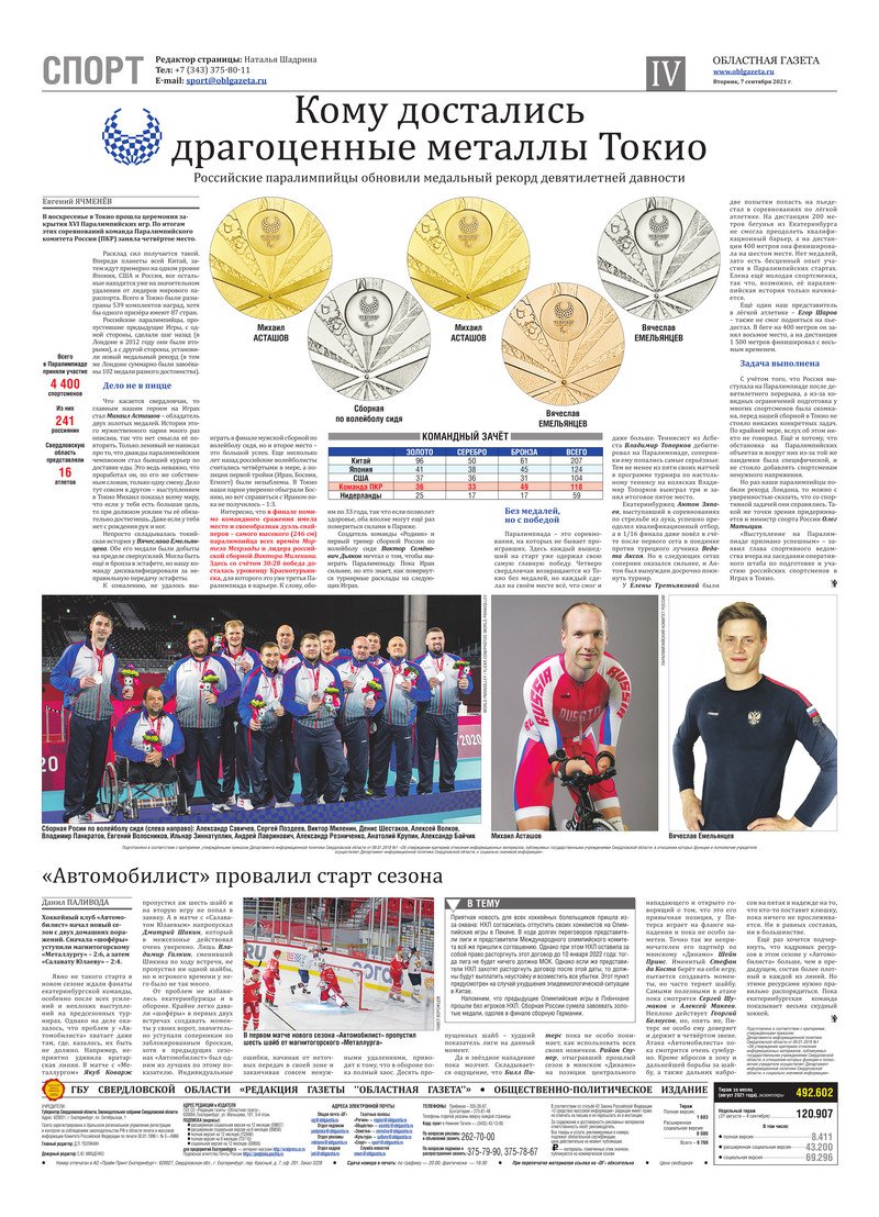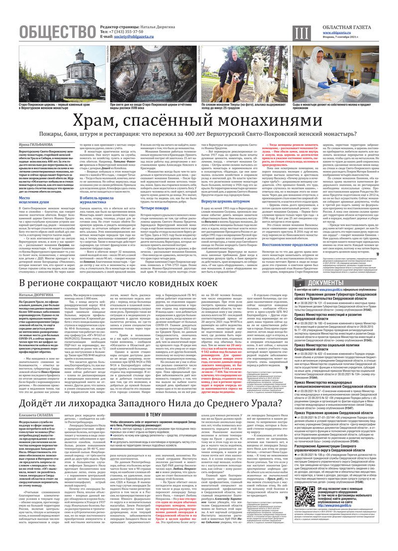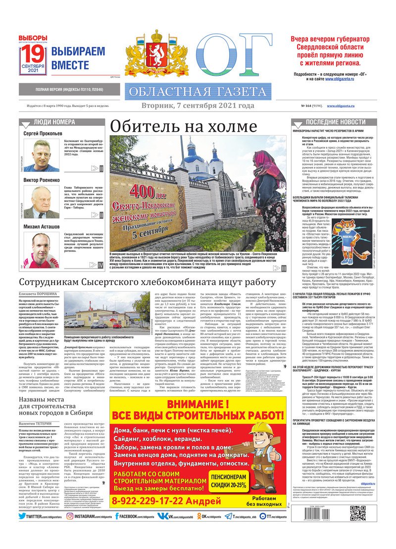 «Областная газета» № 164 (9194) от 7 сентября 2021 года