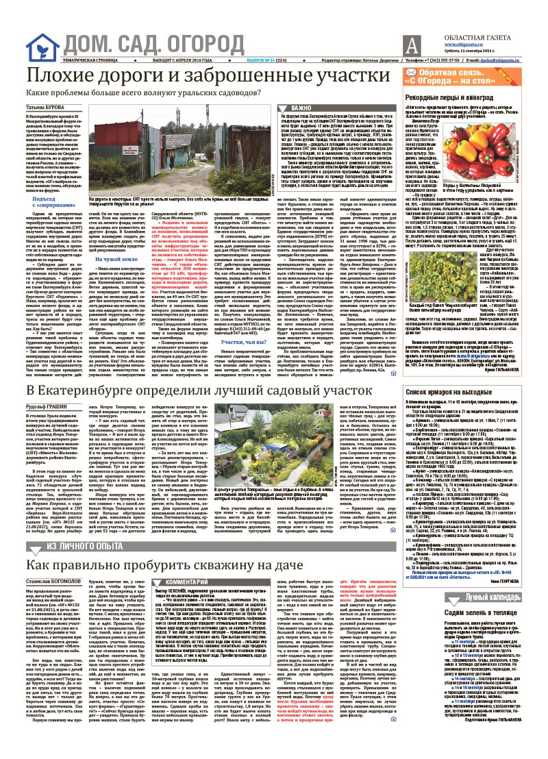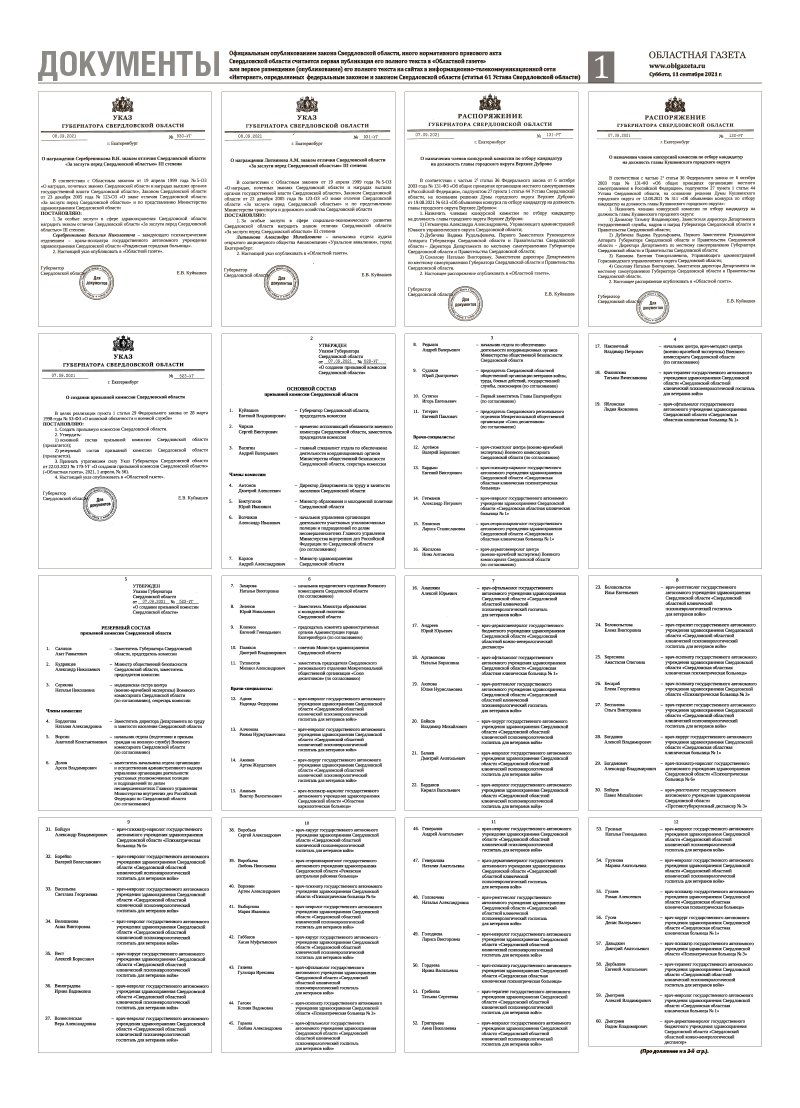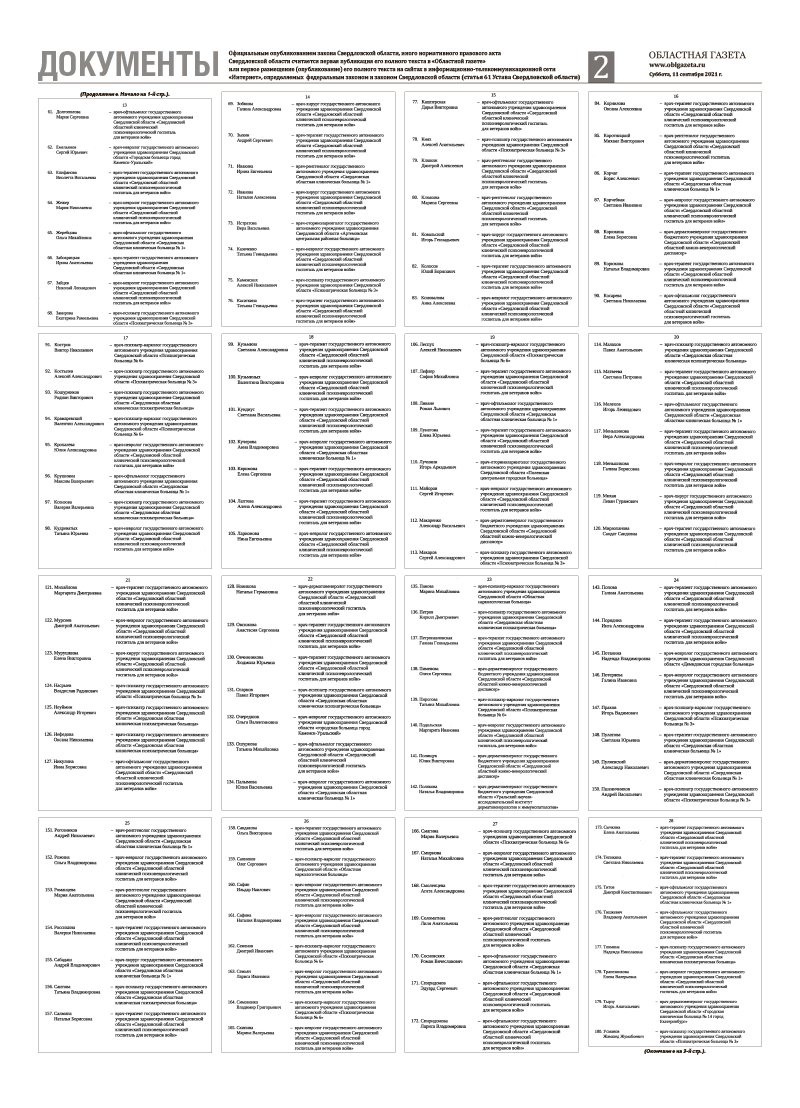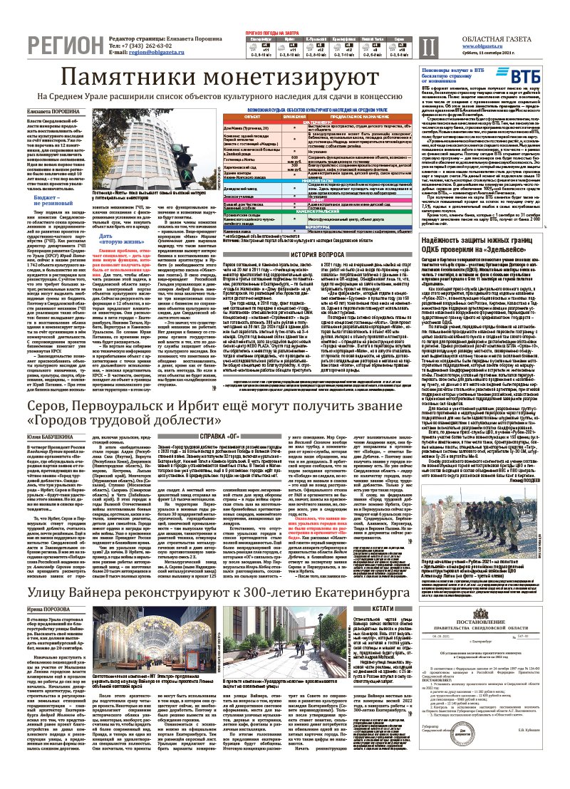 «Областная газета» № 168 (9198) от 11 сентября 2021 года