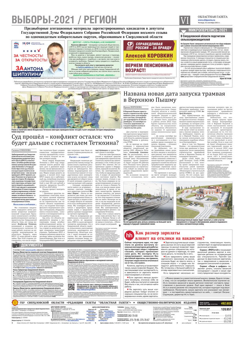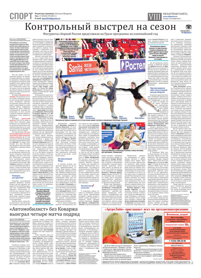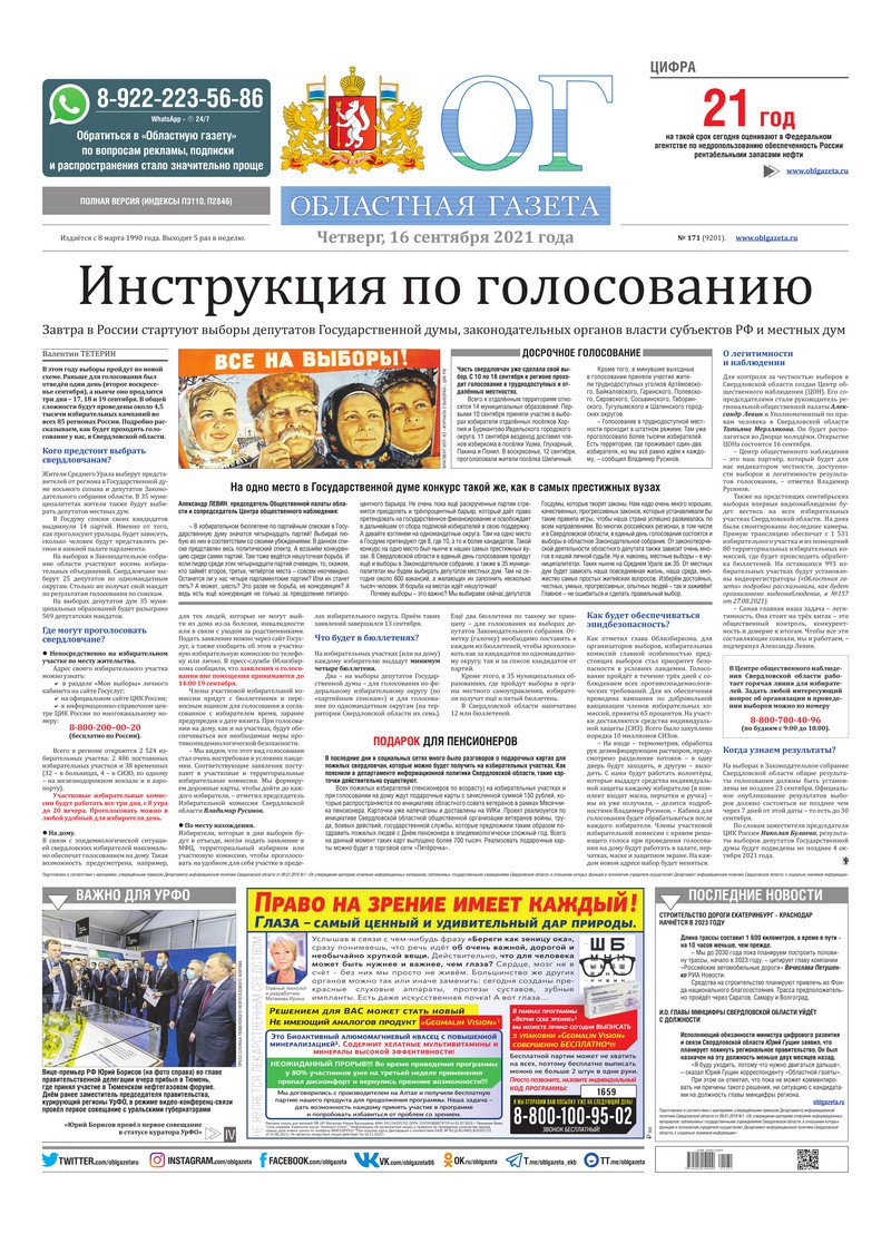 «Областная газета» № 171 (9201) от 16 сентября 2021 года