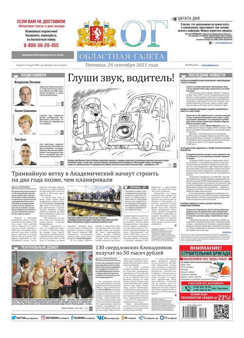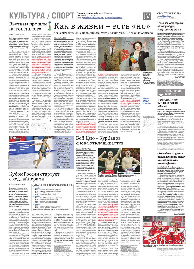 «Областная газета» № 177 (9207) от 24 сентября 2021 года