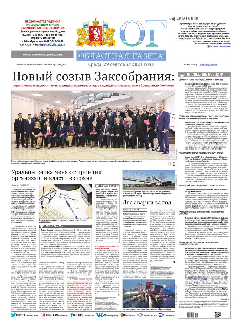 «Областная газета» № 180 (9210) от 29 сентября 2021 года