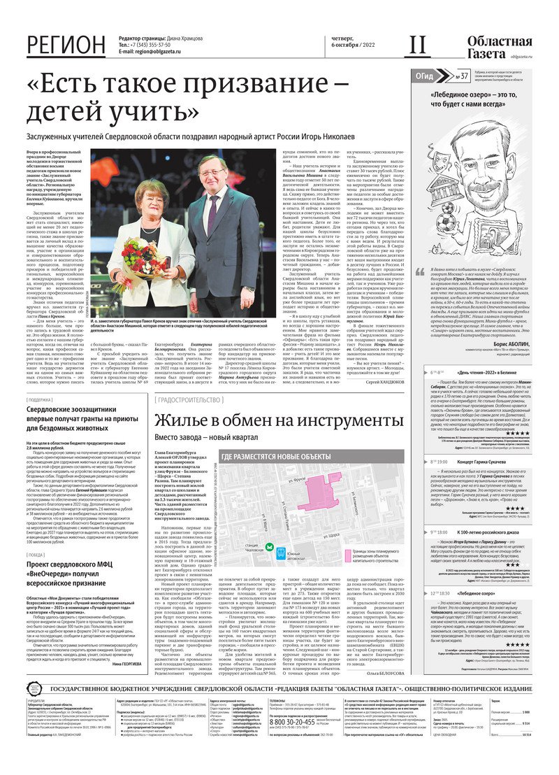 «Областная газета» № 183 (9456) от 6 октября 2022 года