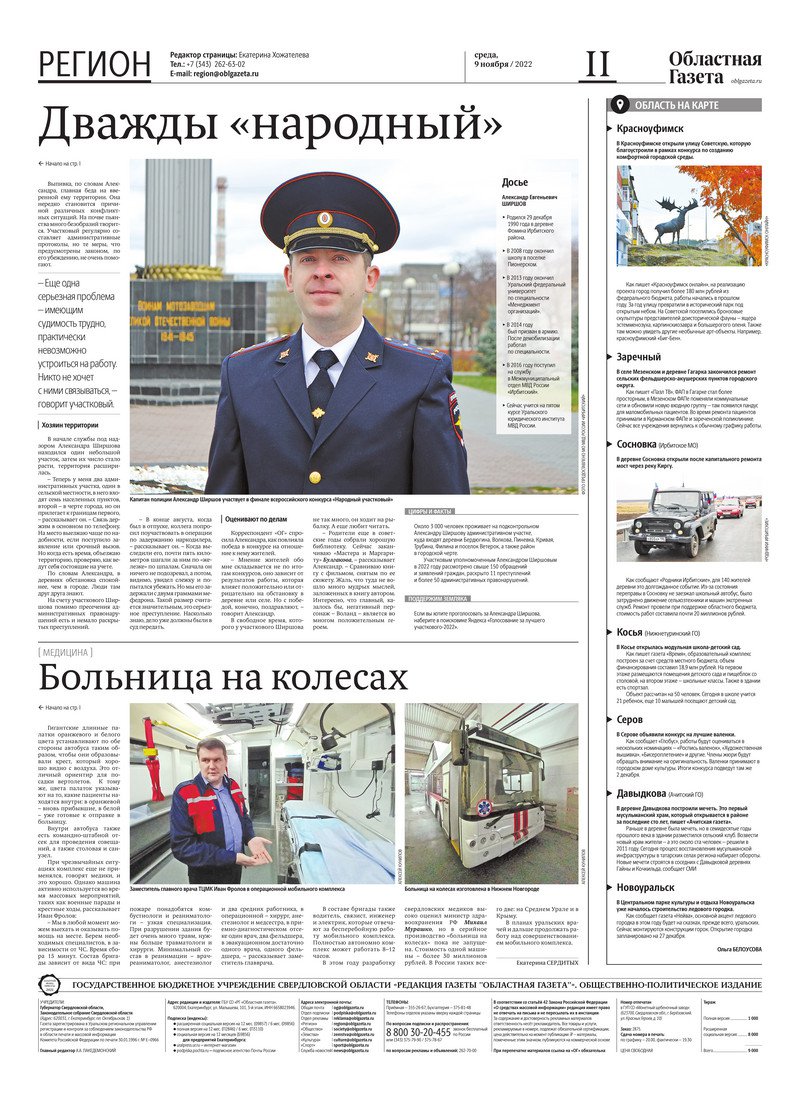 «Областная газета» № 205 (9478) от 9 ноября 2022 года