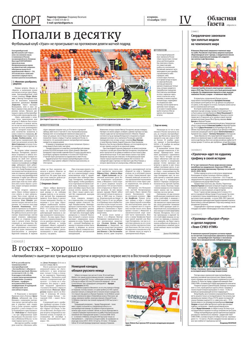 «Областная газета» № 209 (9482) от 15 ноября 2022 года
