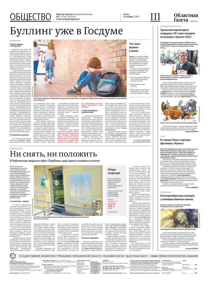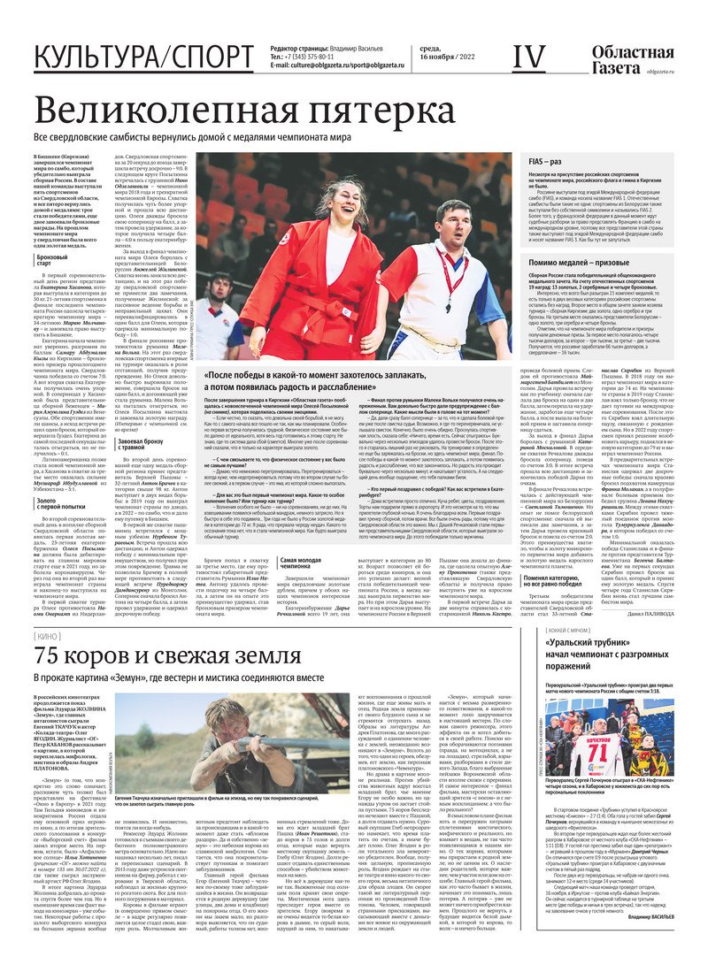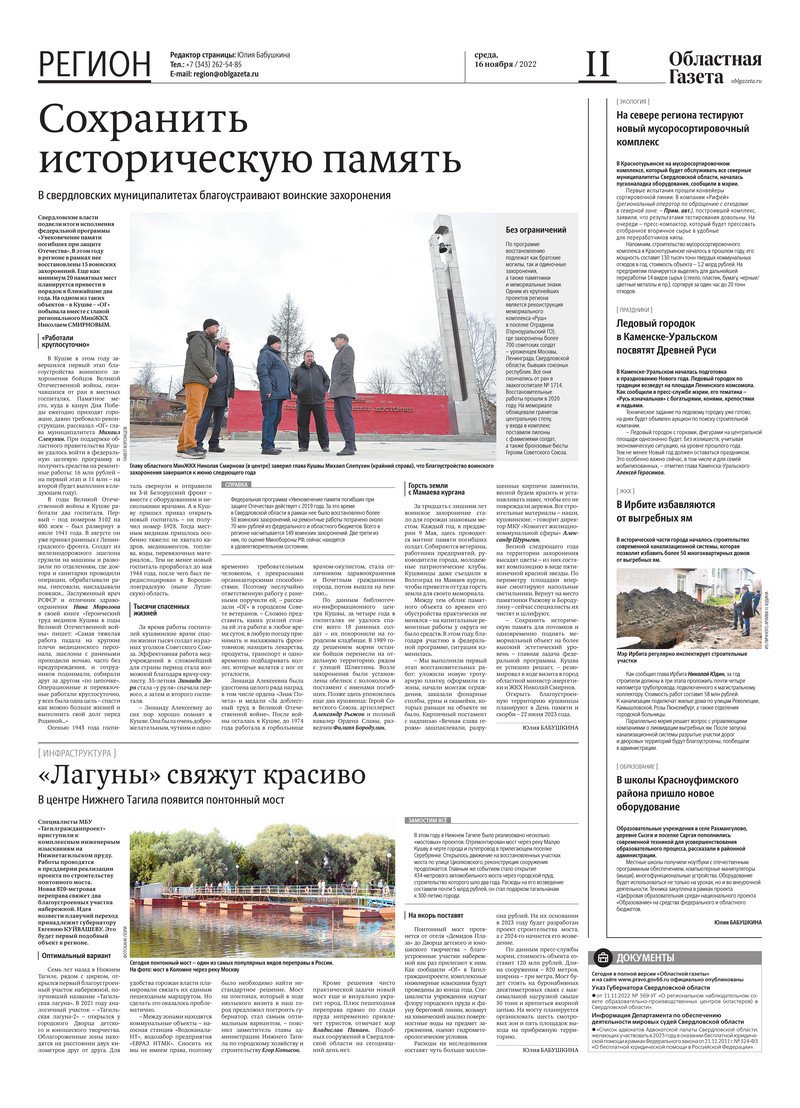 «Областная газета» № 210 (9483) от 16 ноября 2022 года