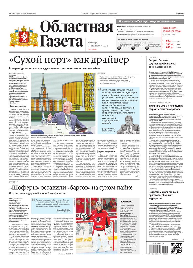 «Областная газета» № 211 (9484) от 17 ноября 2022 года