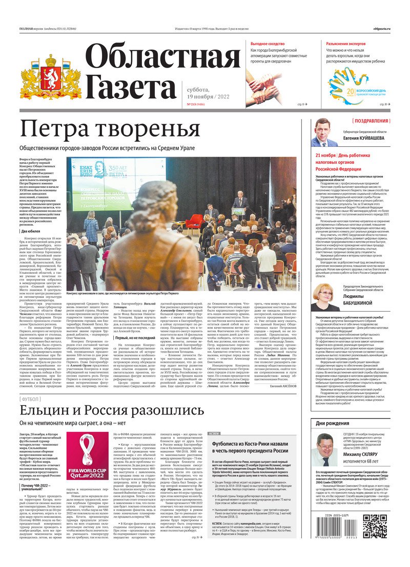 «Областная газета» № 213 (9486) от 19 ноября 2022 года