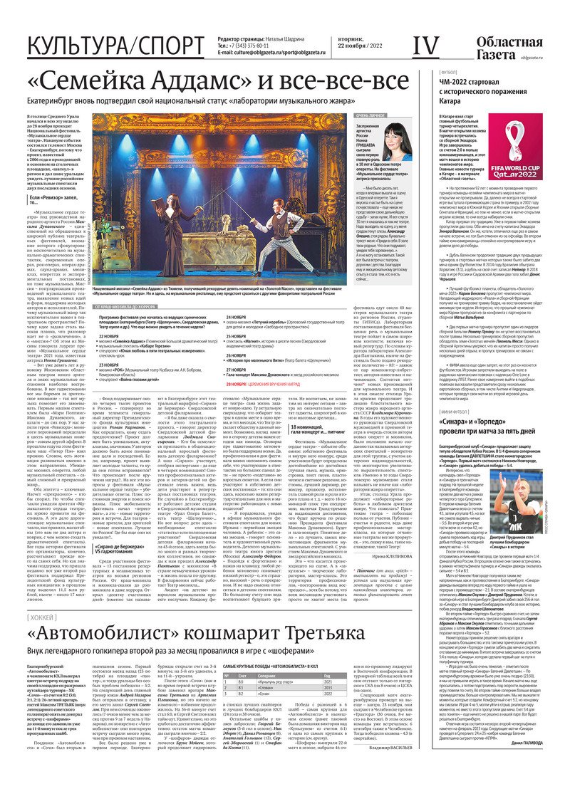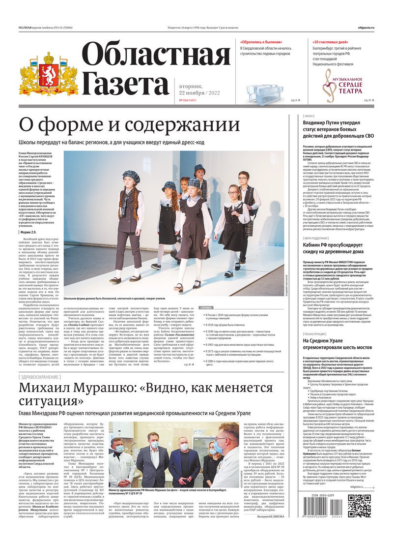 «Областная газета» № 214 (9487) от 22 ноября 2022 года