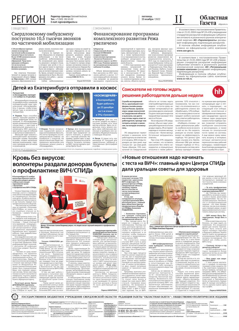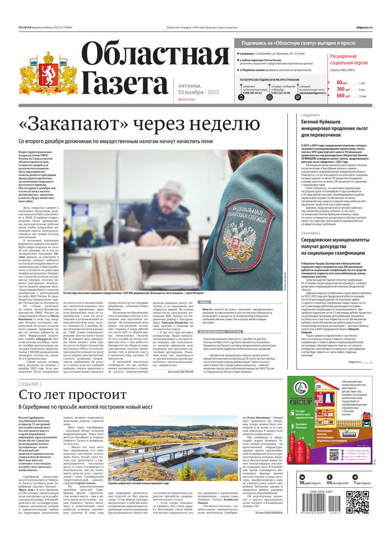 «Областная газета» № 217 (9490) от 25 ноября 2022 года