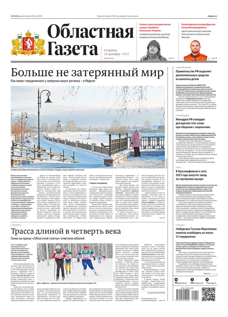 «Областная газета» № 229 (9502) от 13 декабря 2022 года