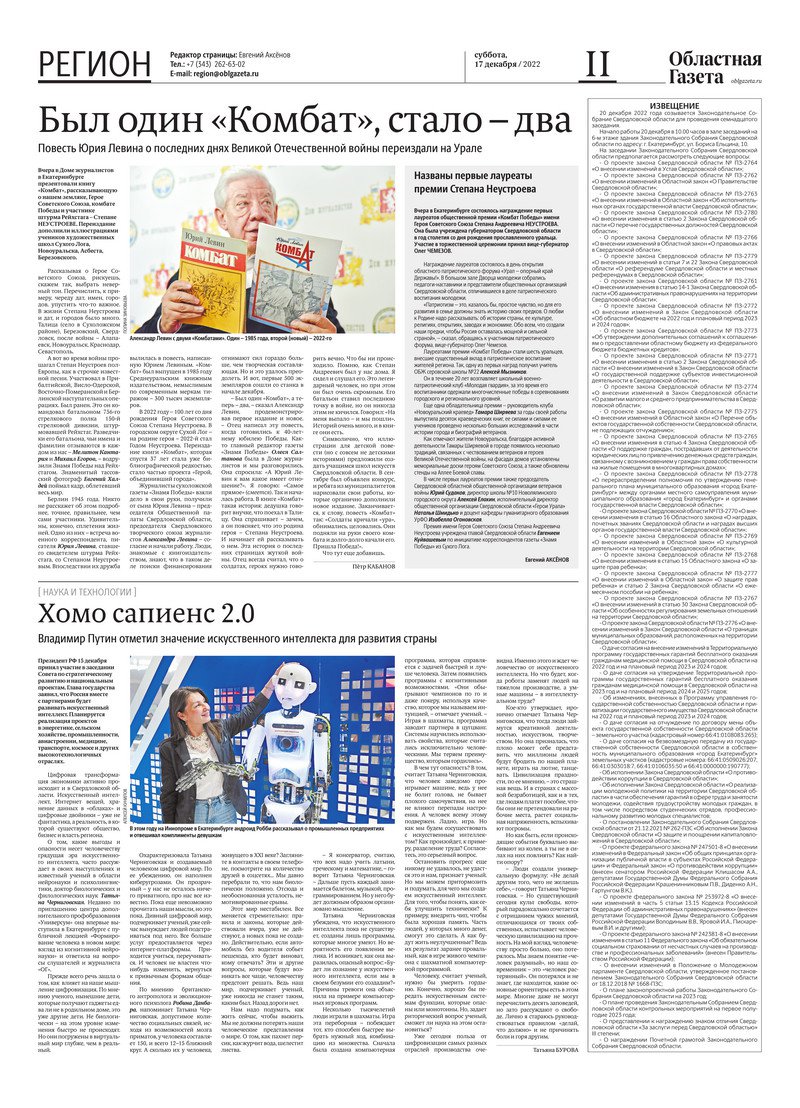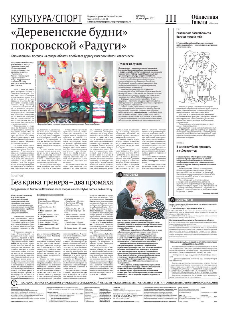 «Областная газета» № 233 (9506) от 17 декабря 2022 года