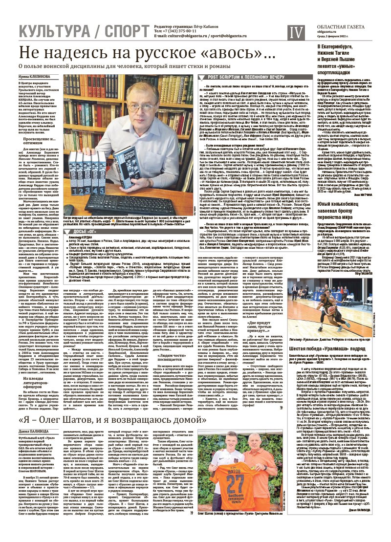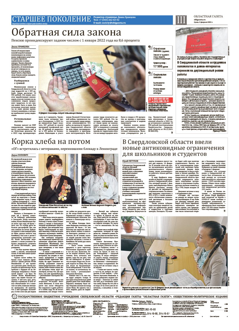 «Областная газета» № 18 (9291) от 2 февраля 2022 года