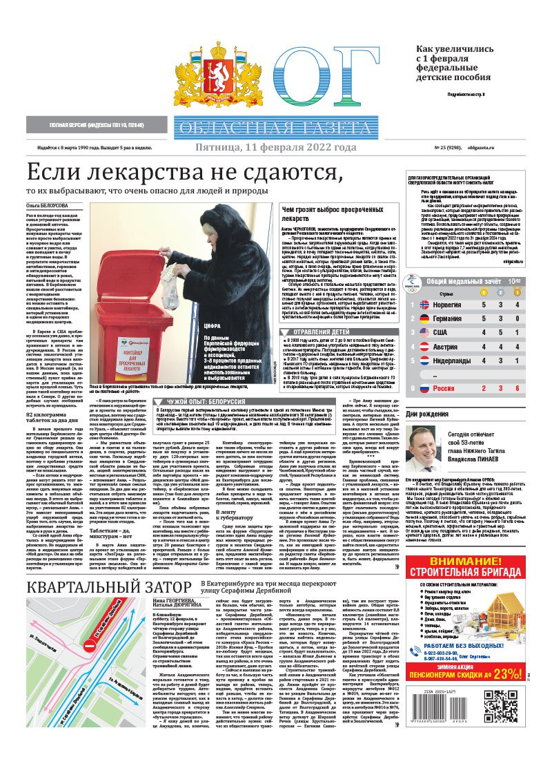 «Областная газета» № 25 (9298) от 11 февраля 2022 года