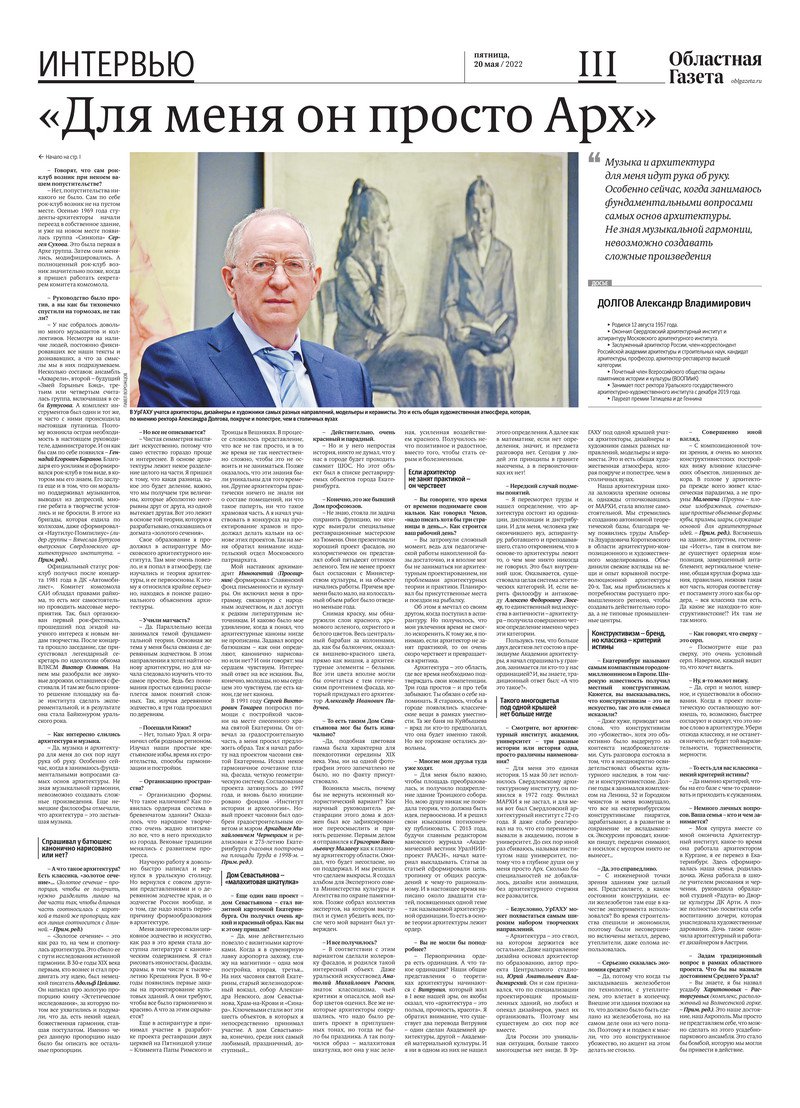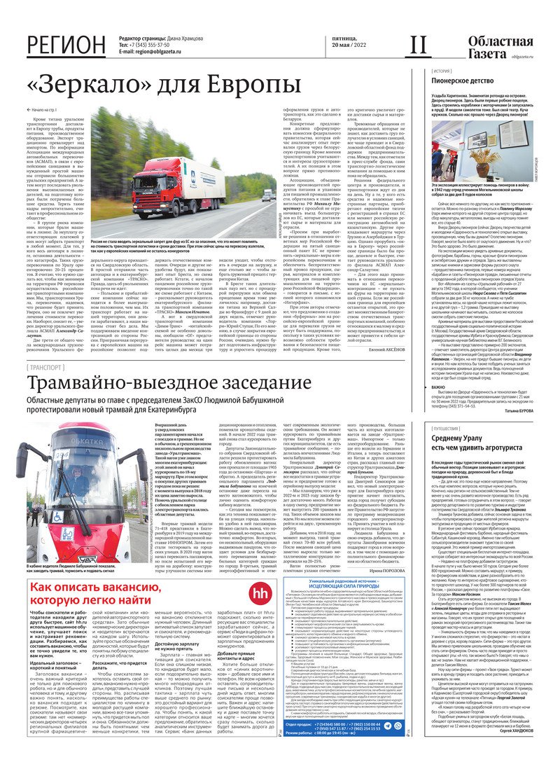 «Областная газета» № 85 (9358) от 20 мая 2022 года
