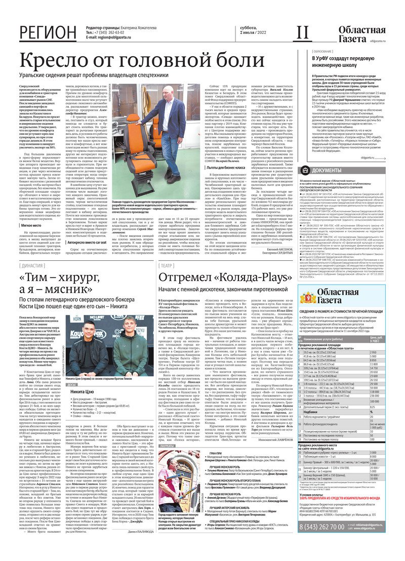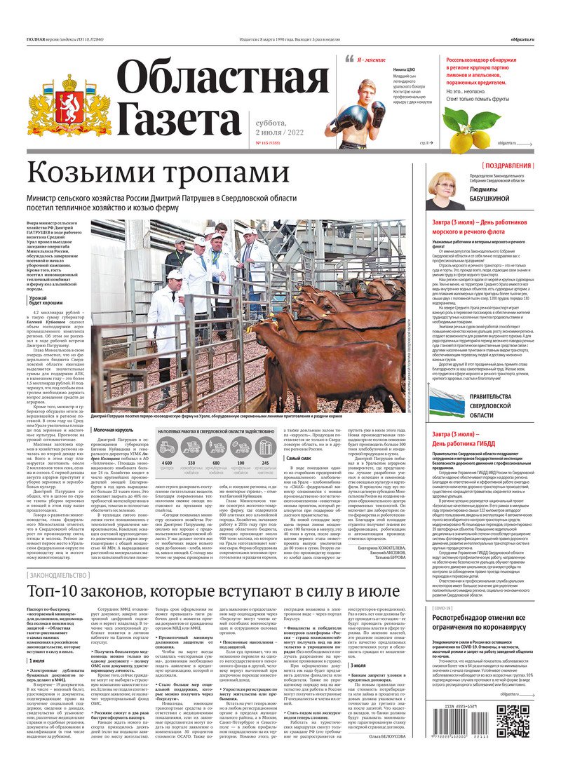 «Областная газета» № 115 (9388) от 2 июля 2022 года