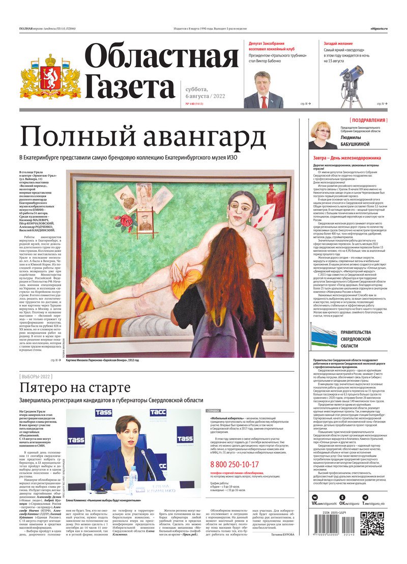 «Областная газета» № 140 (9413) от 6 августа 2022 года