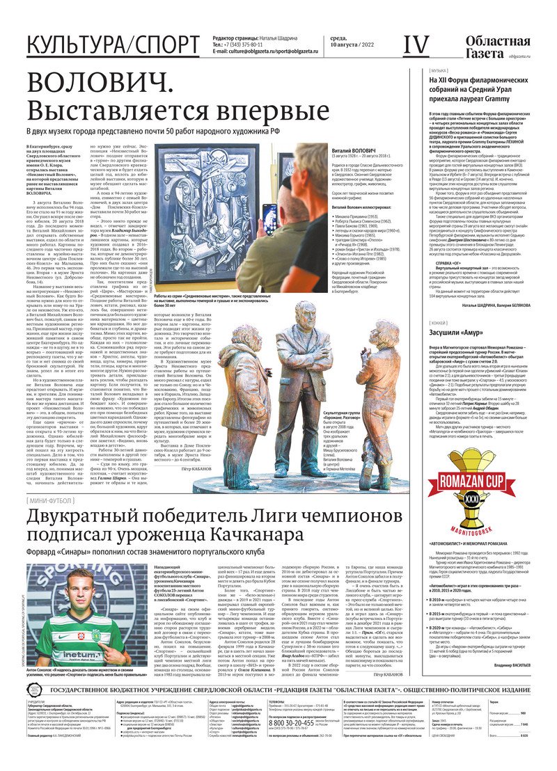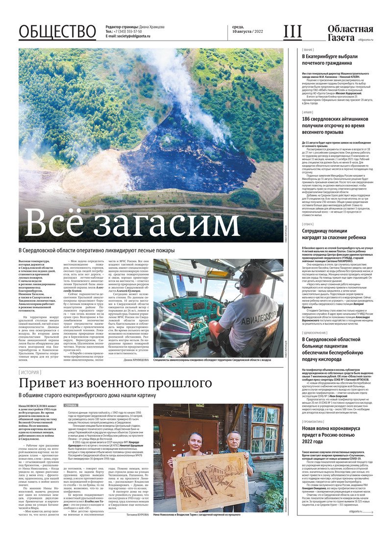 «Областная газета» № 142 (9415) от 10 августа 2022 года