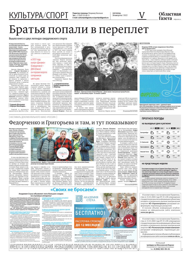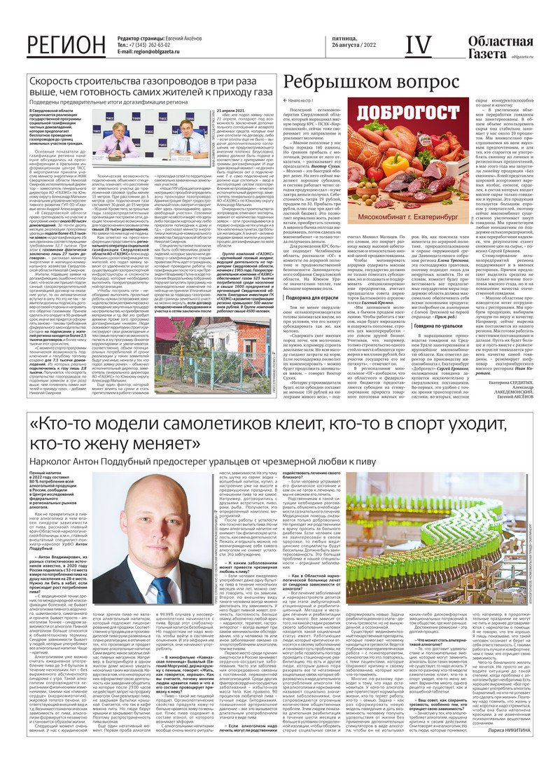 «Областная газета» № 154 (9427) от 26 августа 2022 года