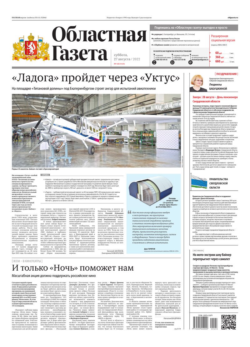 «Областная газета» № 155 (9428) от 27 августа 2022 года
