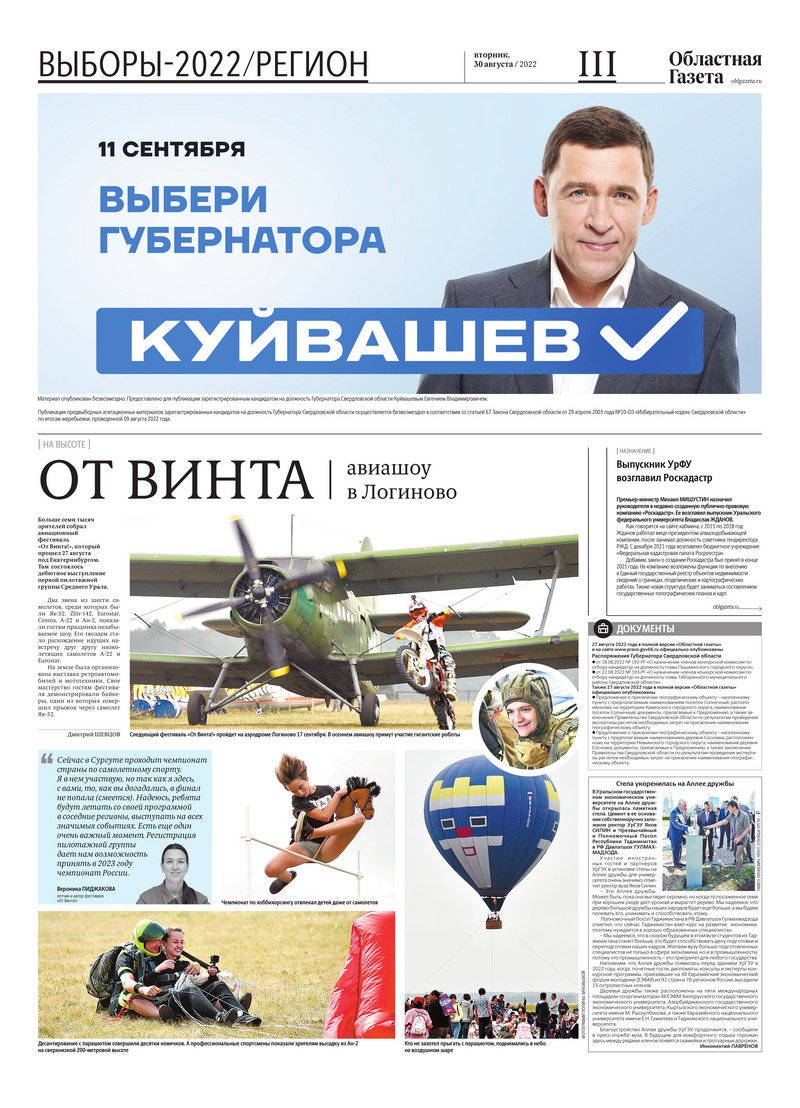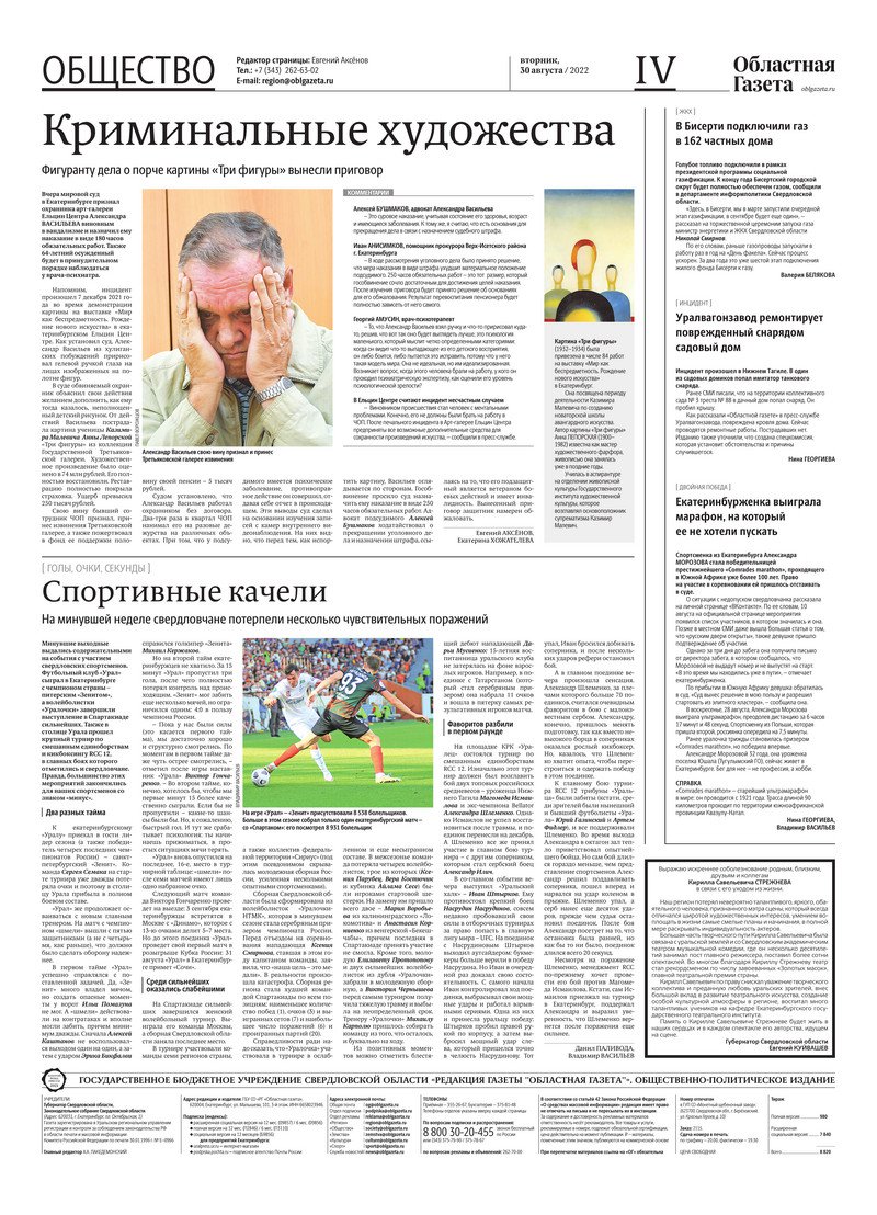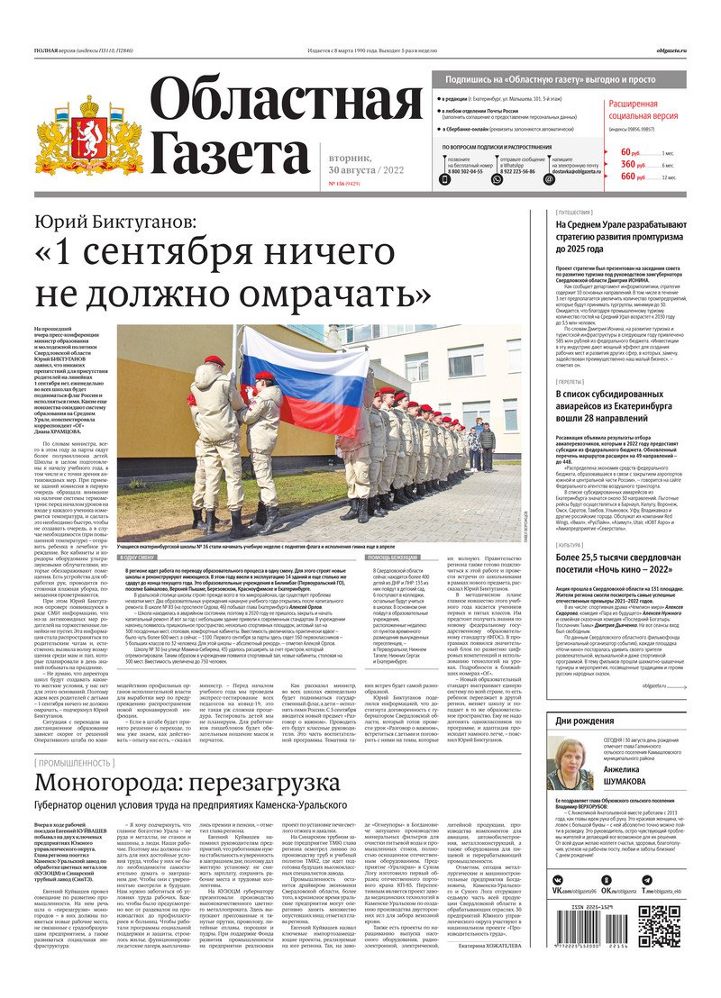 «Областная газета» № 156 (9429) от 30 августа 2022 года