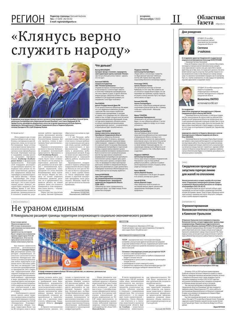 «Областная газета» № 171 (9444) от 20 сентября 2022 года