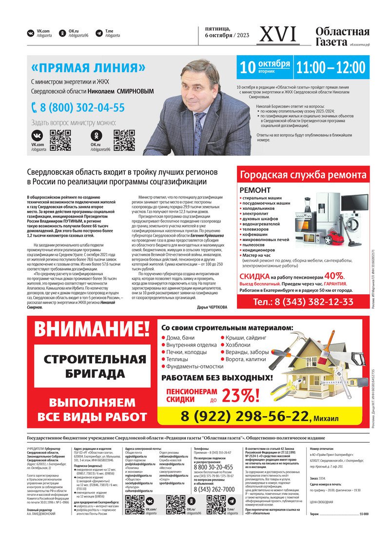 «Областная газета» № 225 (9740) от 5 октября 2023 года