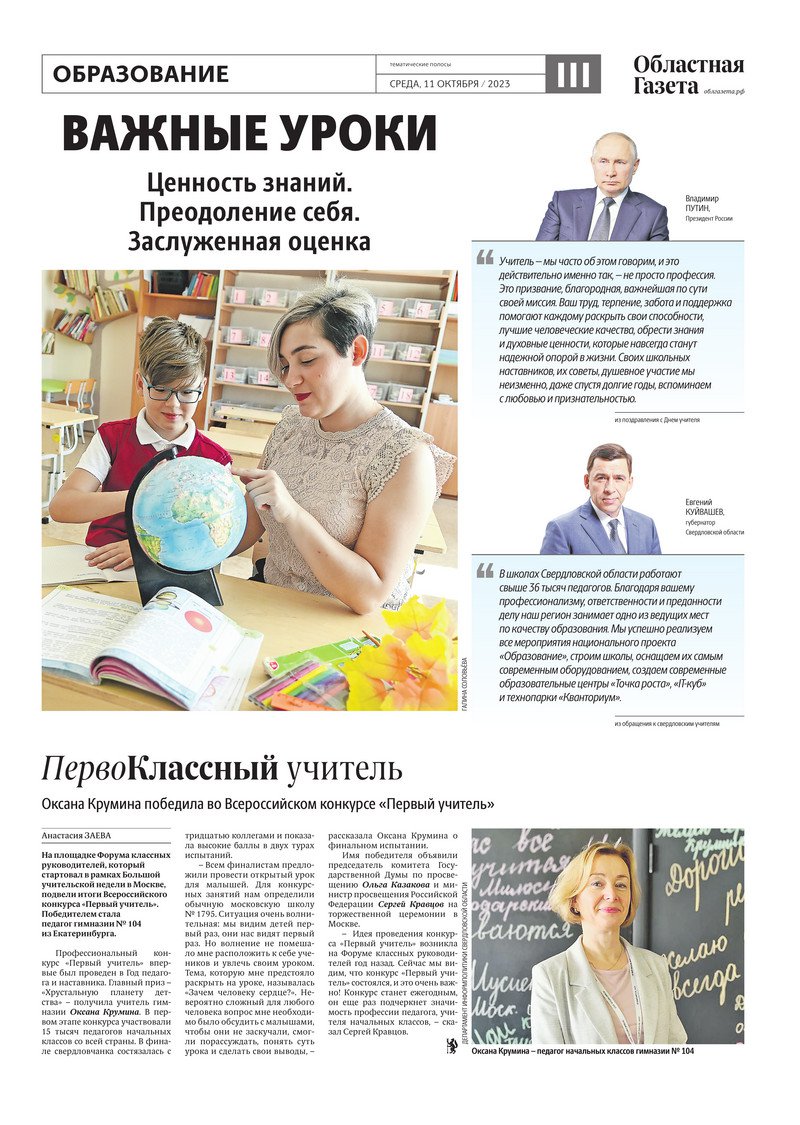 «Областная газета» № 228 (9743) от 11 октября 2023 года
