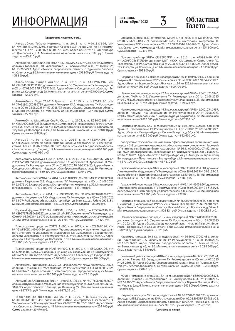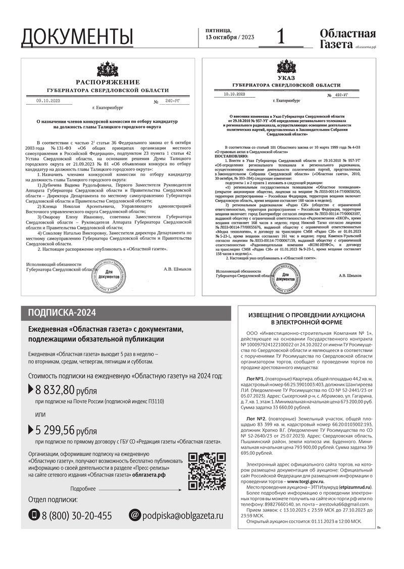 «Областная газета» № 230 (9745) от 13 октября 2023 года