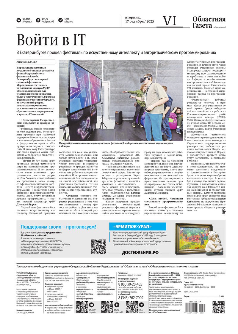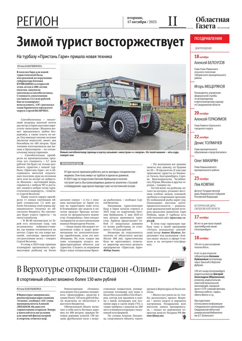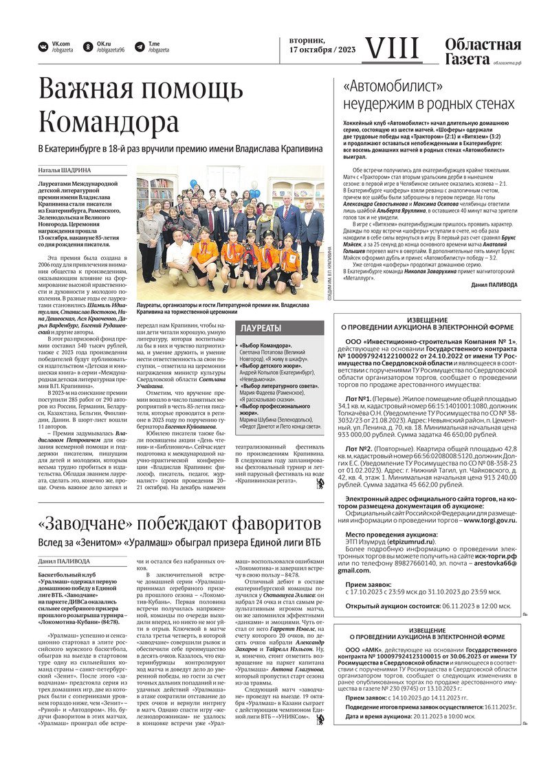 «Областная газета» № 233 (9748) от 17 октября 2023 года