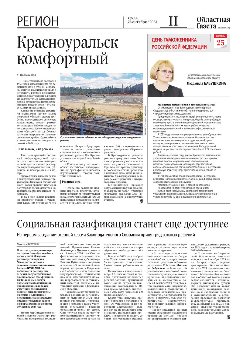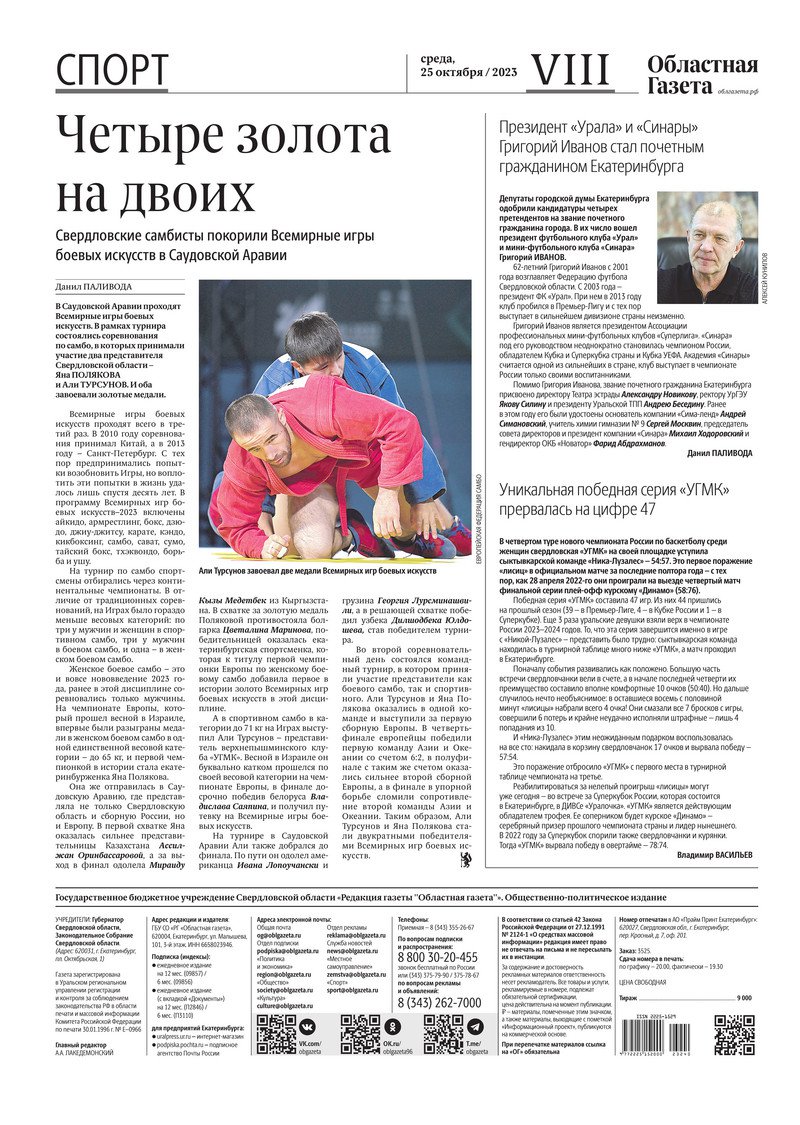 «Областная газета» № 240 (9755) от 25 октября 2023 года