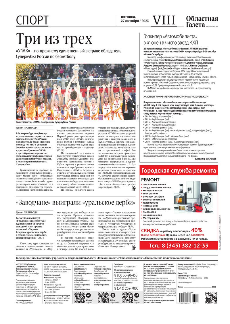 «Областная газета» № 242 (9757) от 27 октября 2023 года