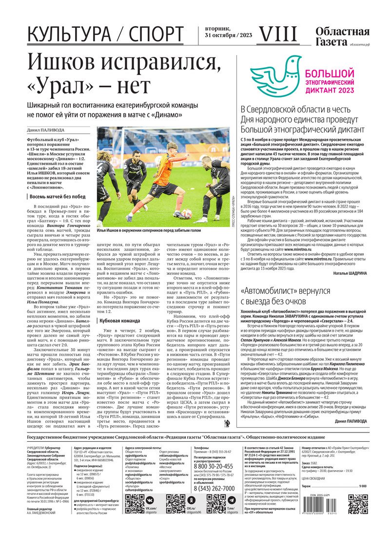 «Областная газета» № 245 (9760) от 31 октября 2023 года