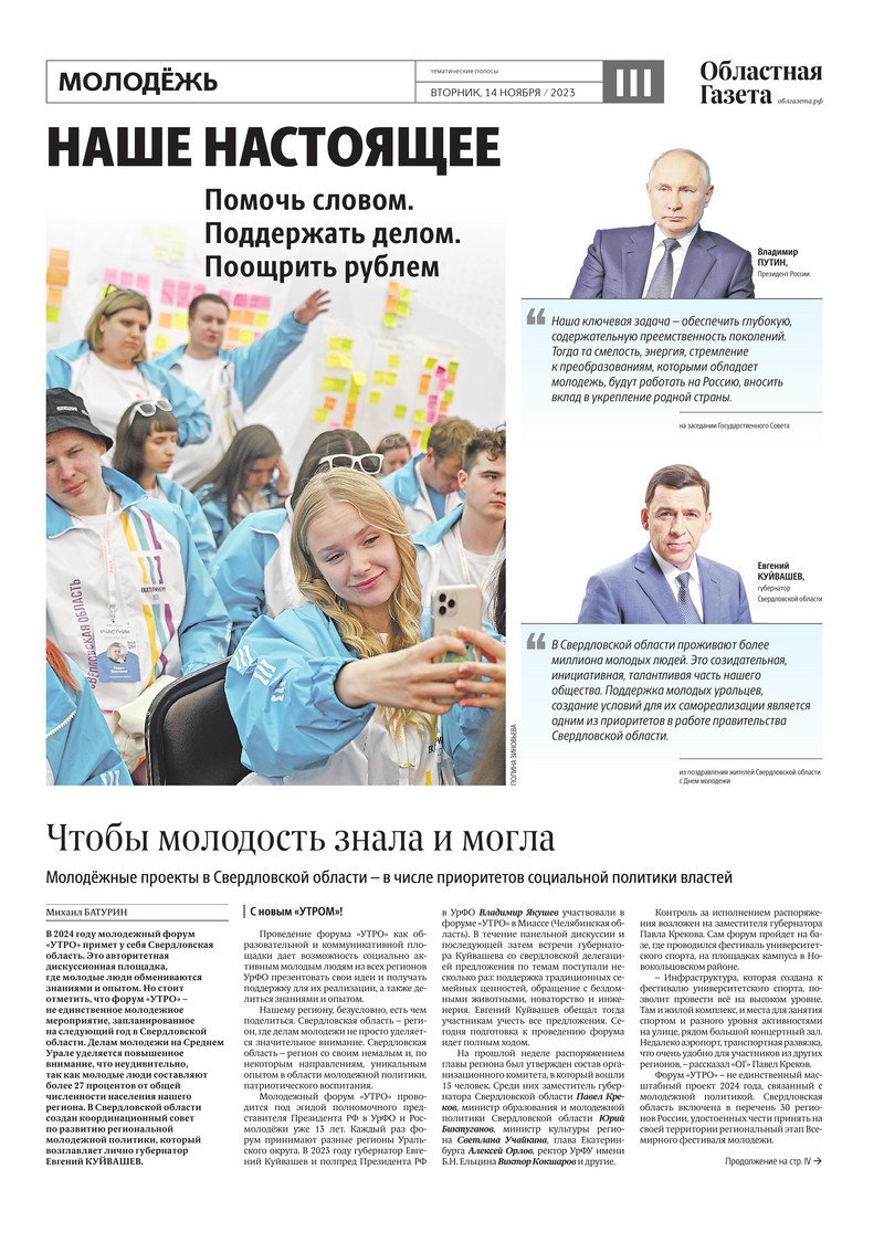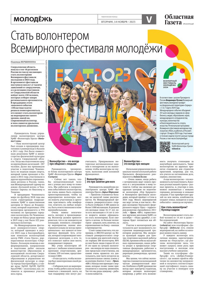 «Областная газета» № 257 (9772) от 14 ноября 2023 года