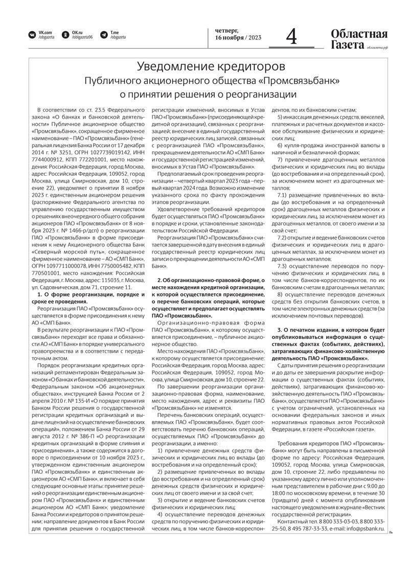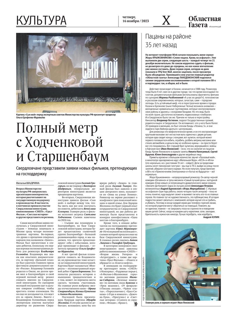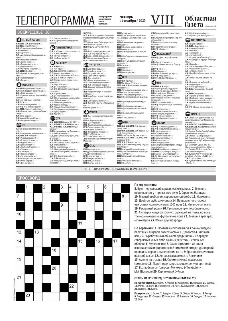 «Областная газета» № 259 (9774) от 16 ноября 2023 года