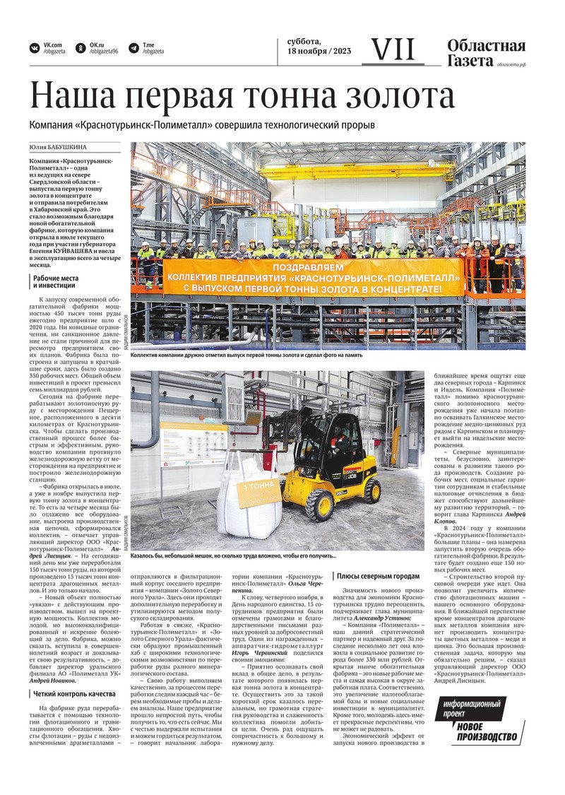 «Областная газета» № 262 (9777) от 18 ноября 2023 года