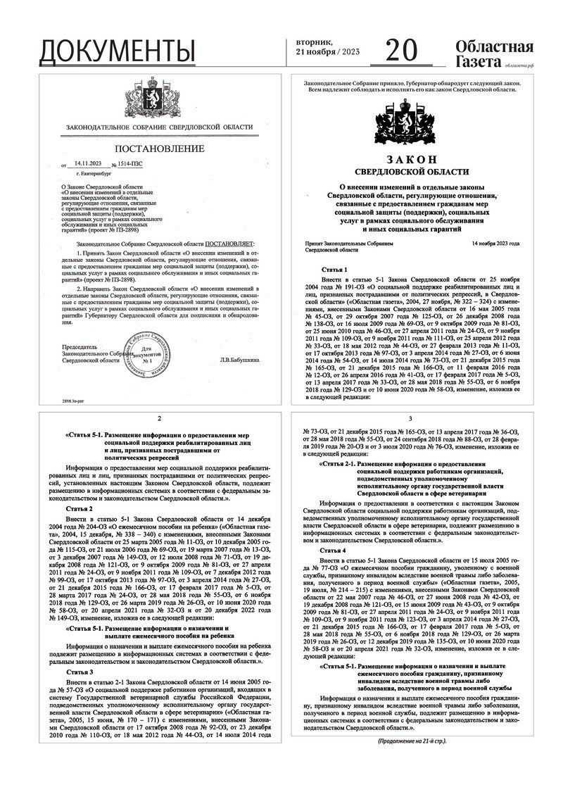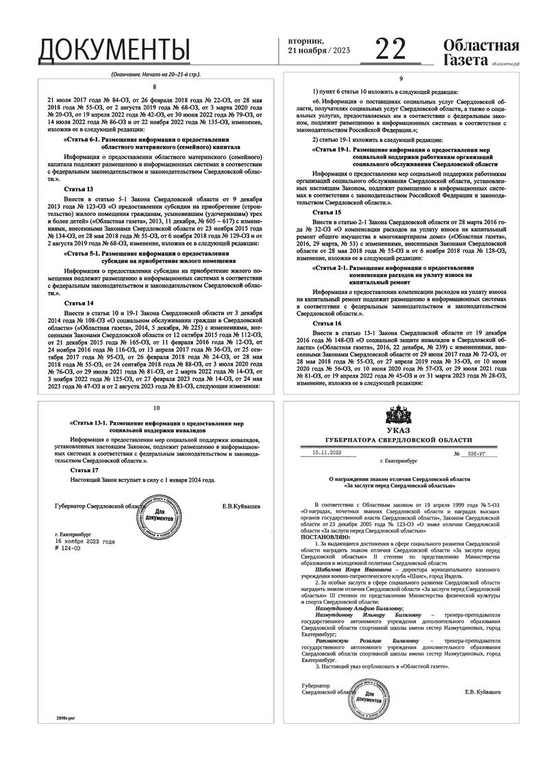 «Областная газета» № 263 (9778) от 21 ноября 2023 года