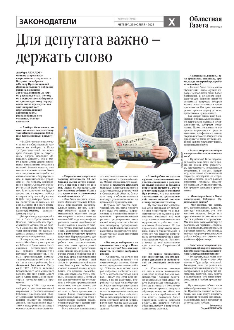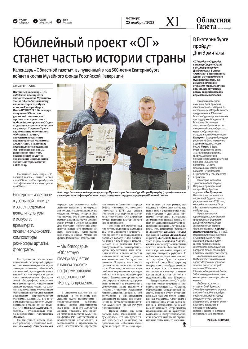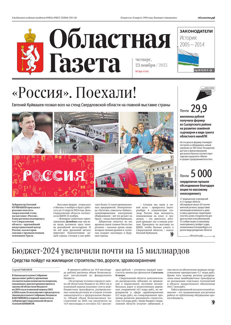 «Областная газета» № 265 (9780) от 23 ноября 2023 года