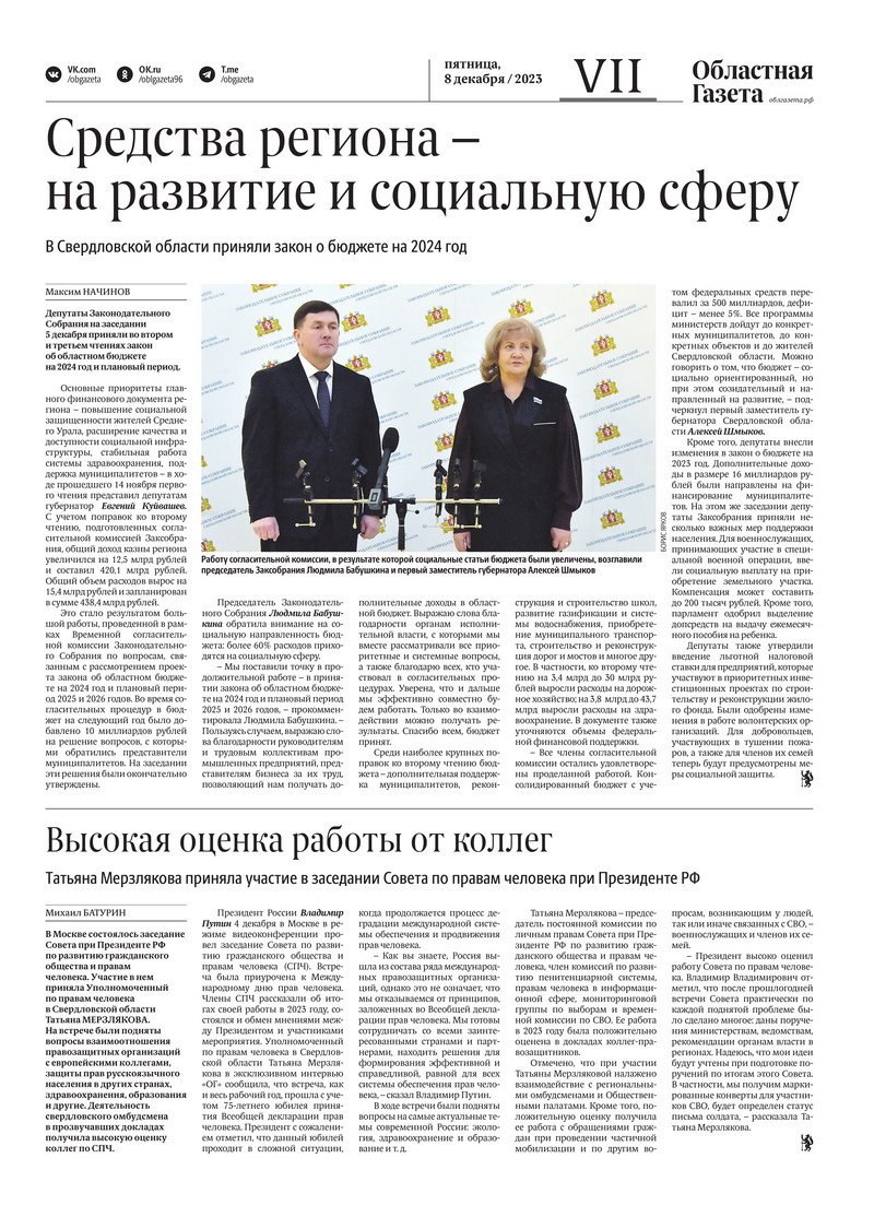 «Областная газета» № 279 (9794) от 7 декабря 2023 года