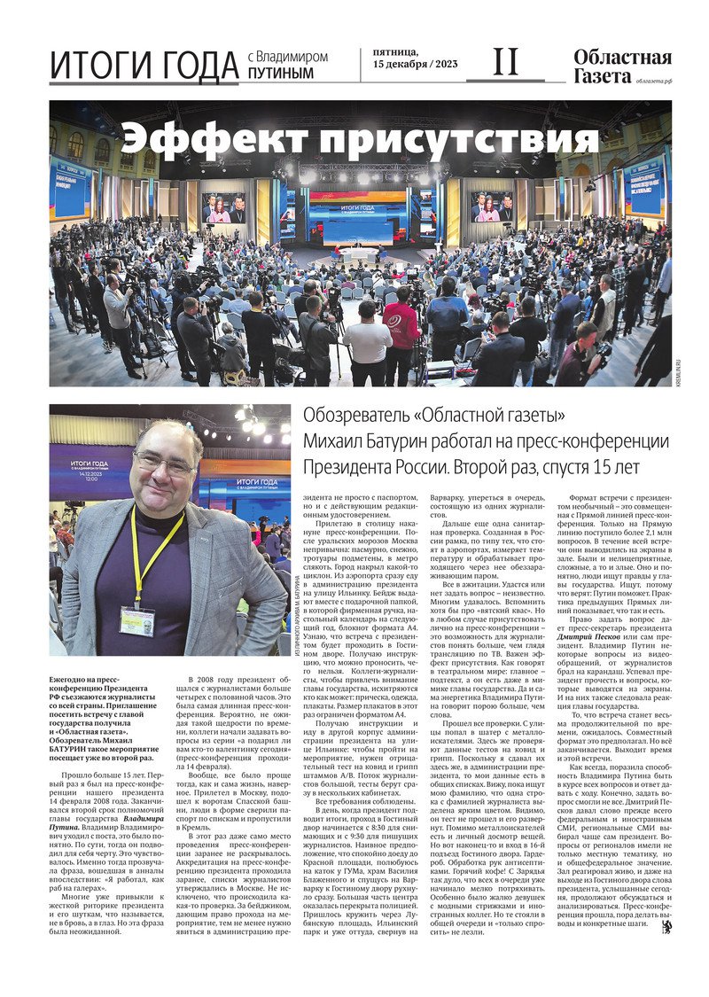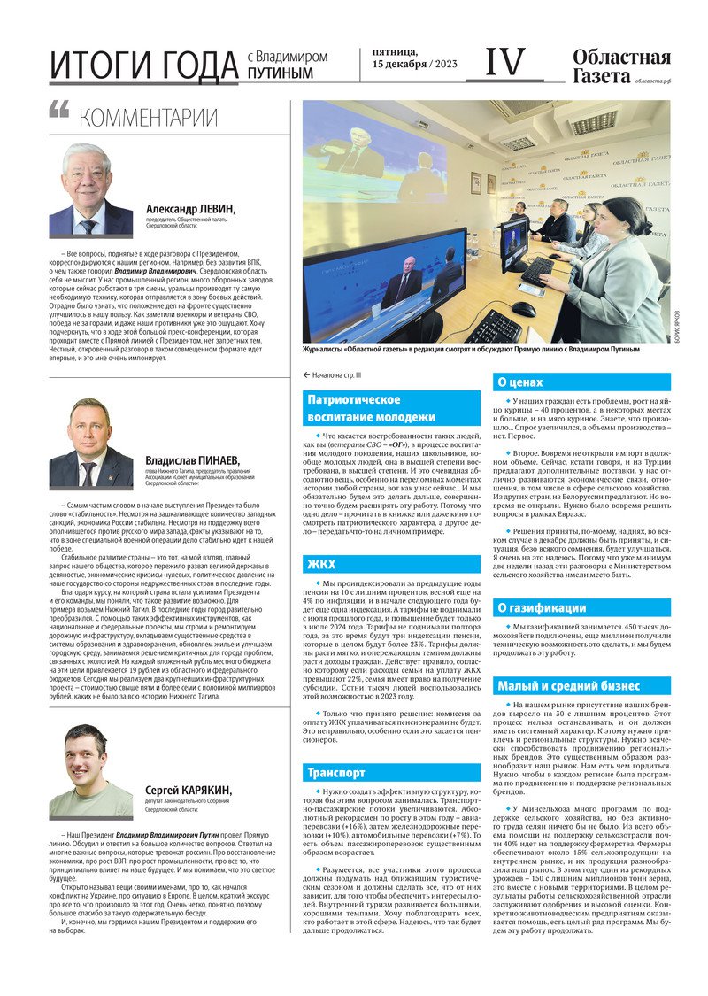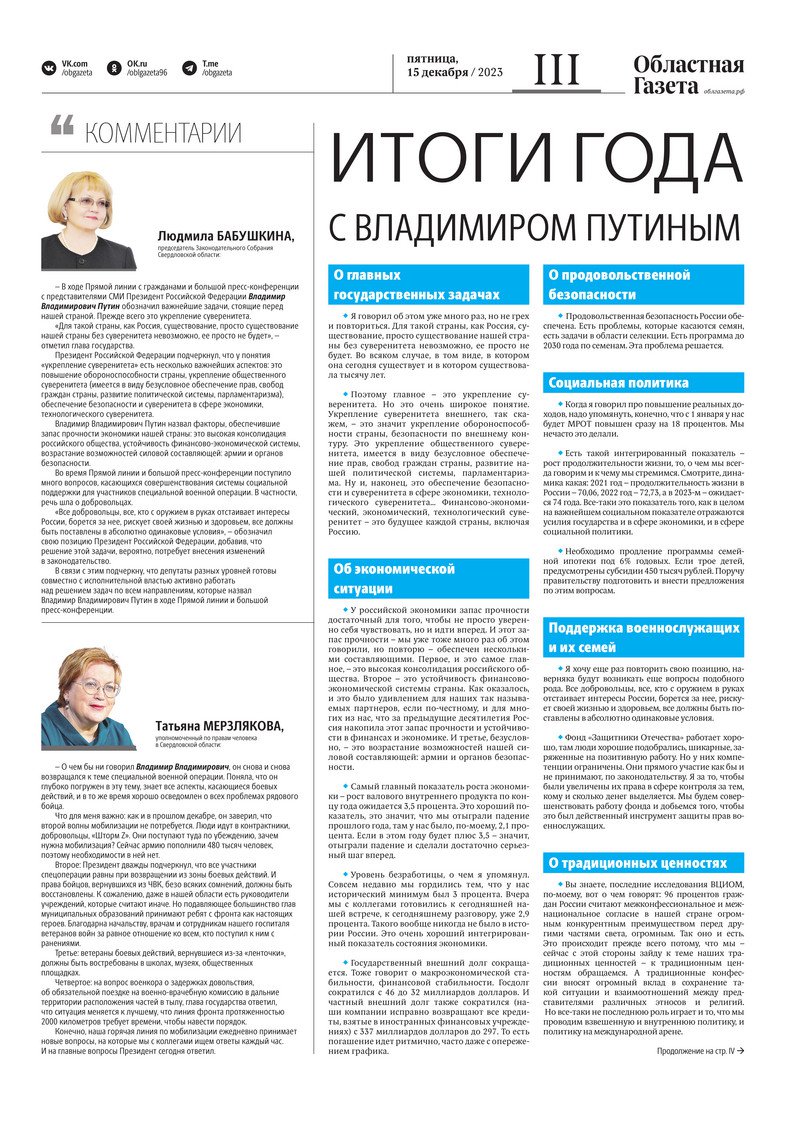 «Областная газета» № 285 (9800) от 14 декабря 2023 года