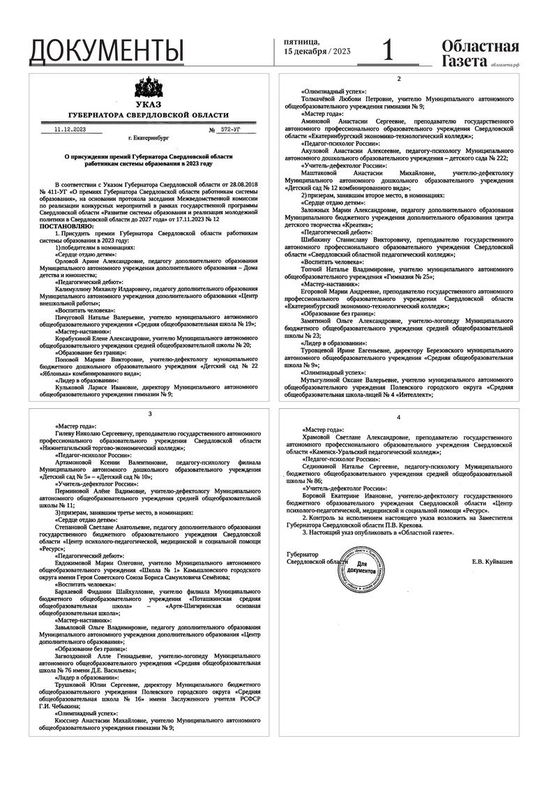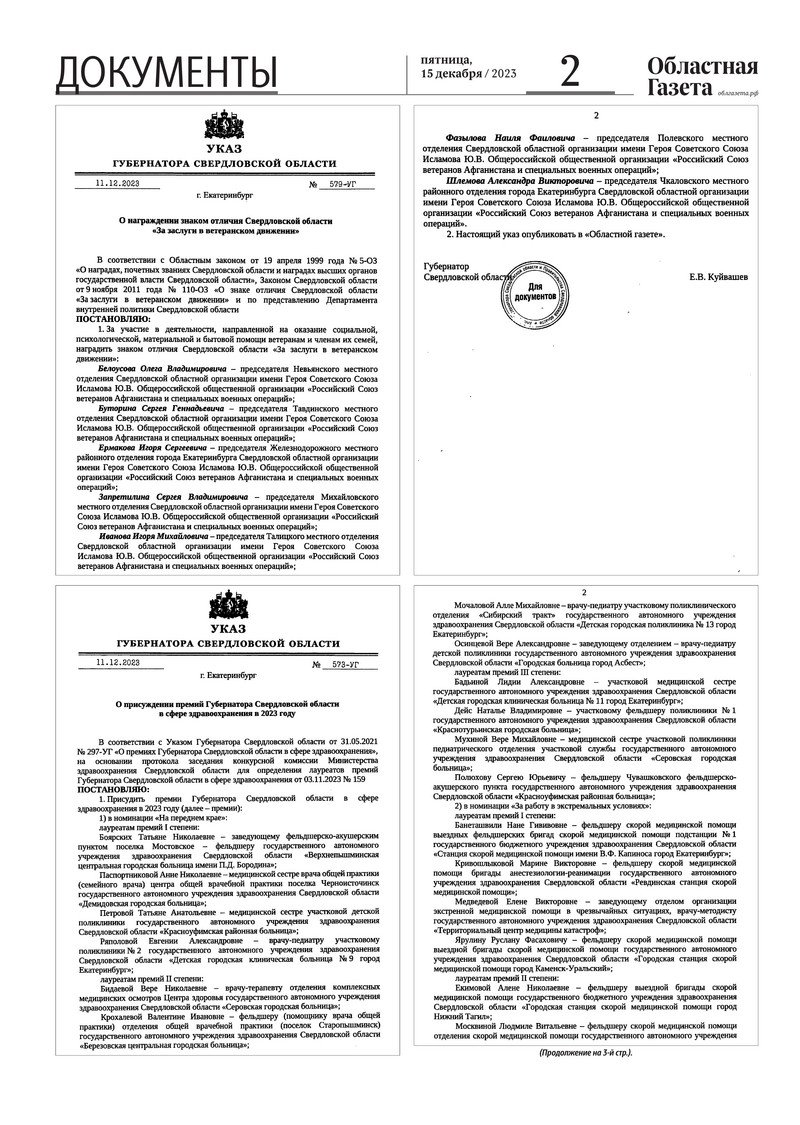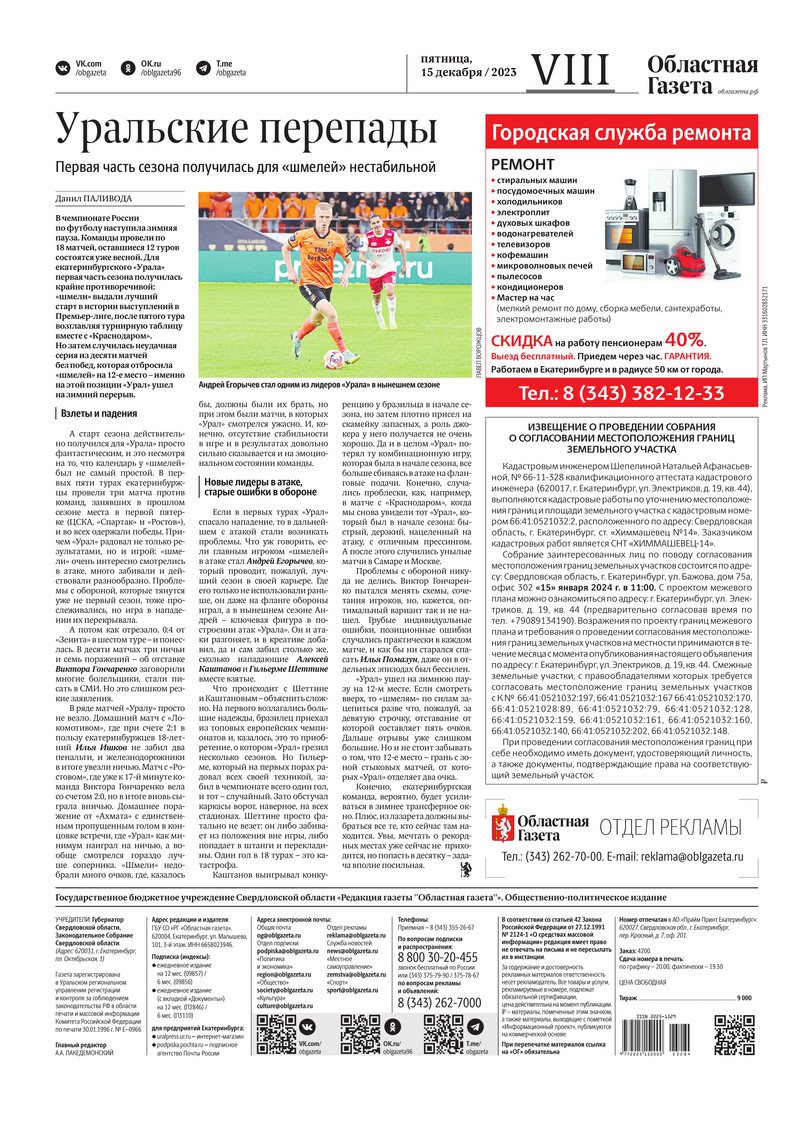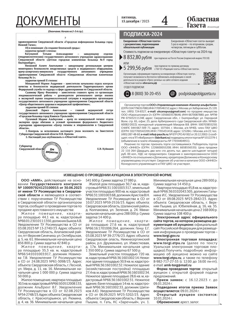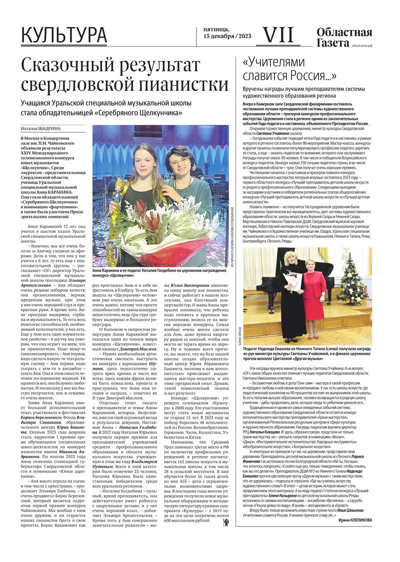 «Областная газета» № 284 (9799) от 15 декабря 2023 года