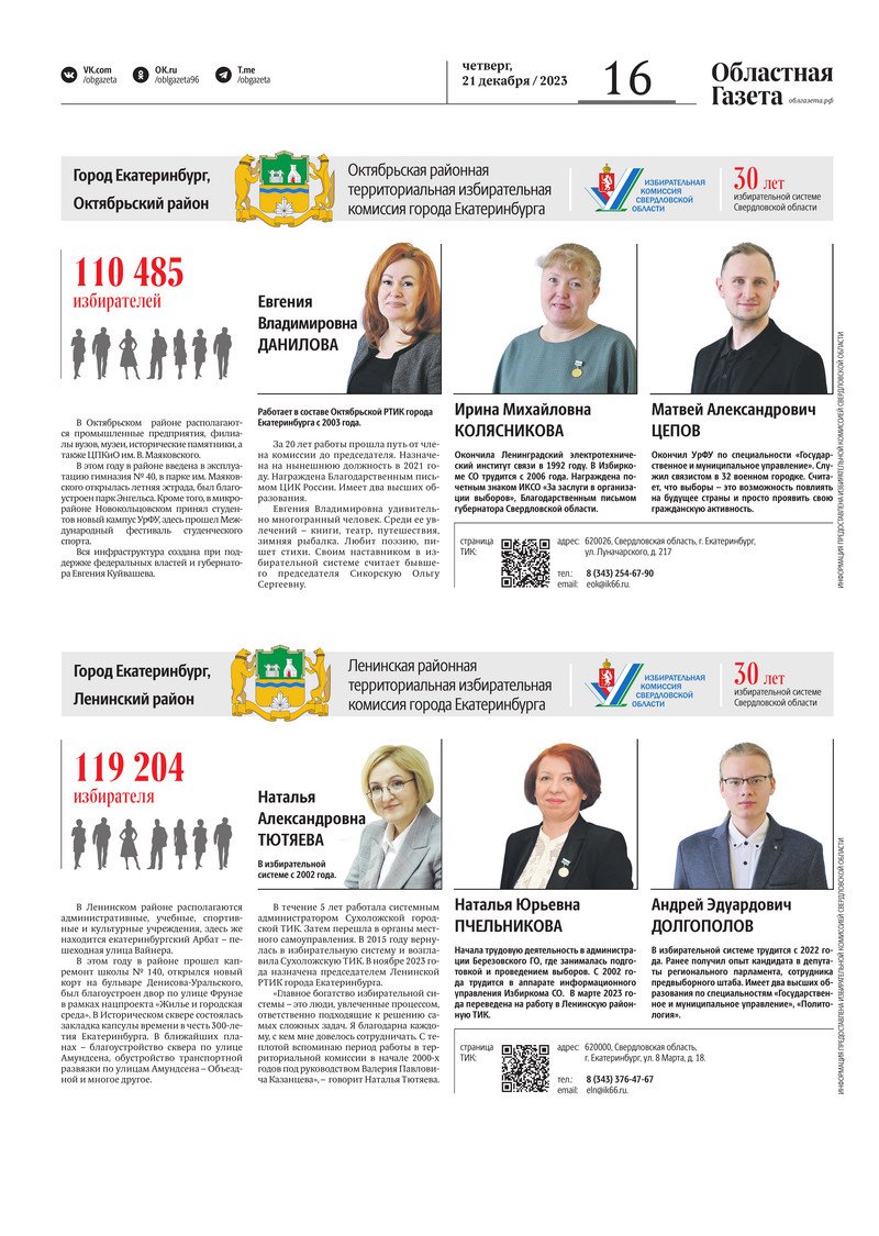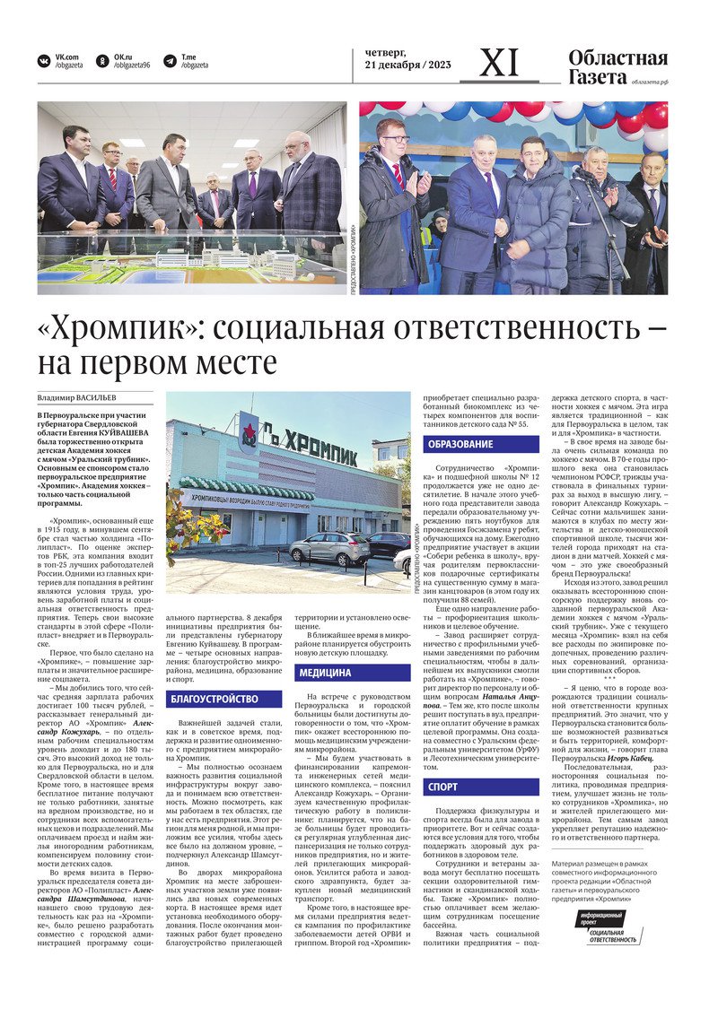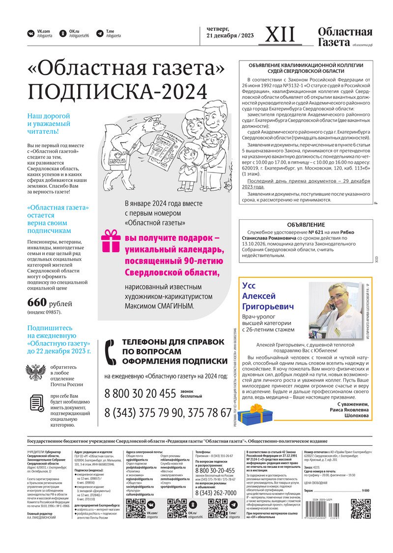 «Областная газета» № 289 (9804) от 21 декабря 2023 года