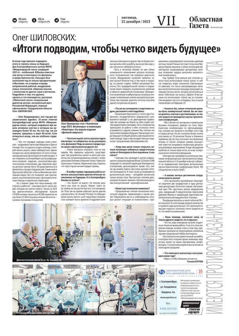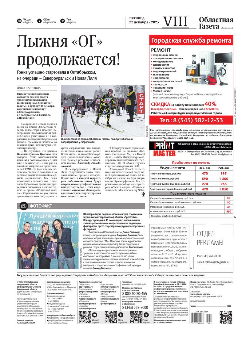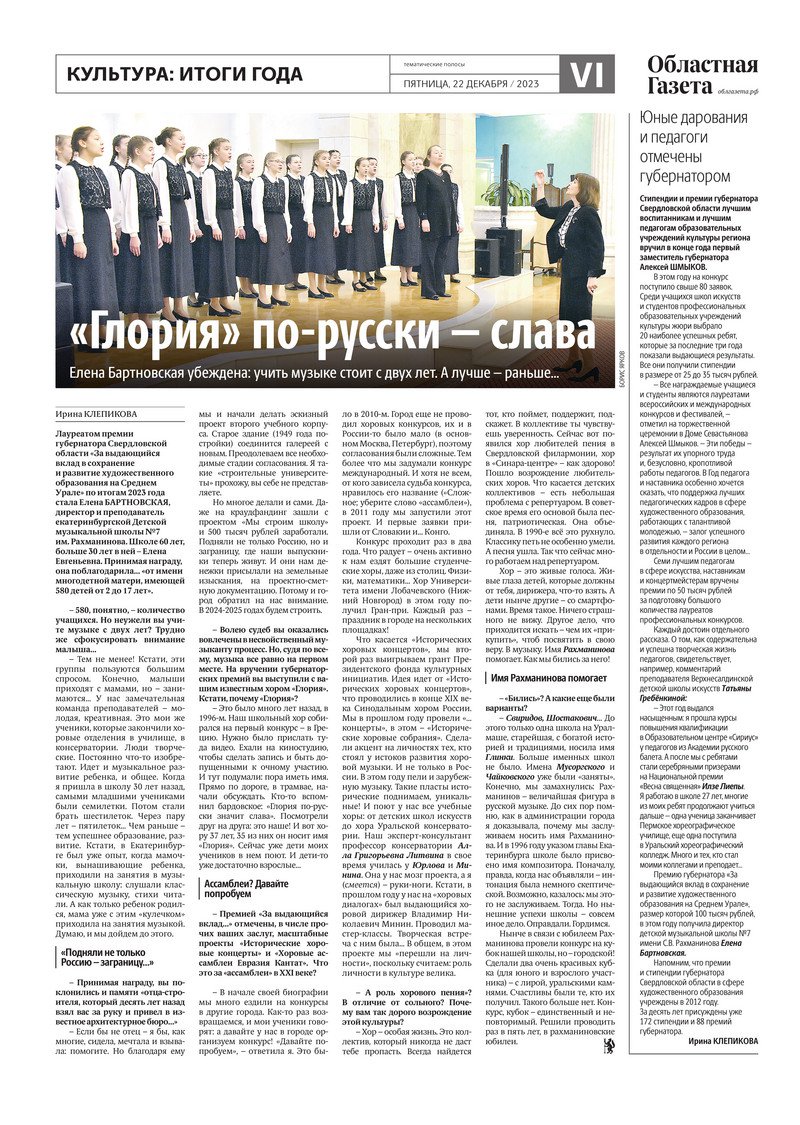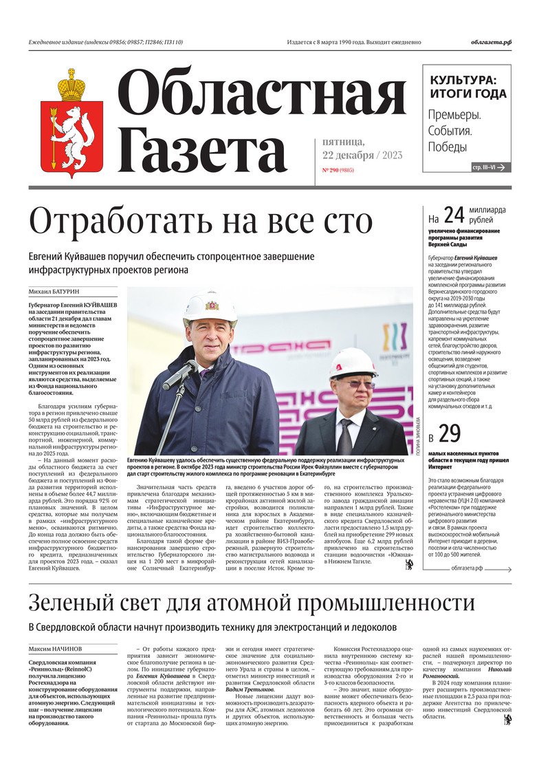 «Областная газета» № 290 (9805) от 22 декабря 2023 года