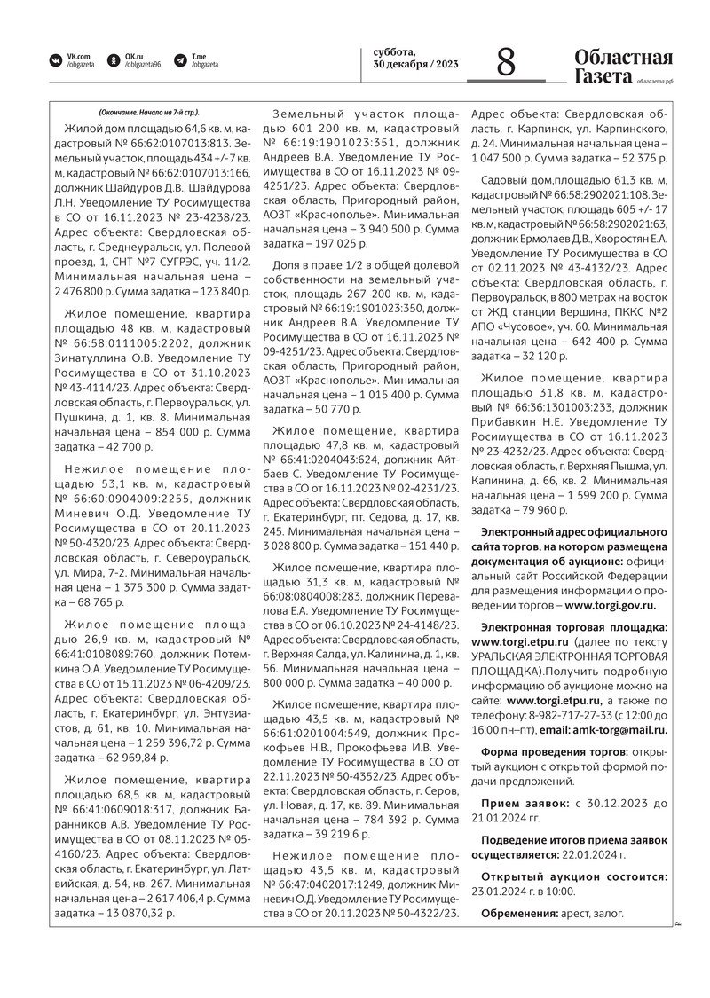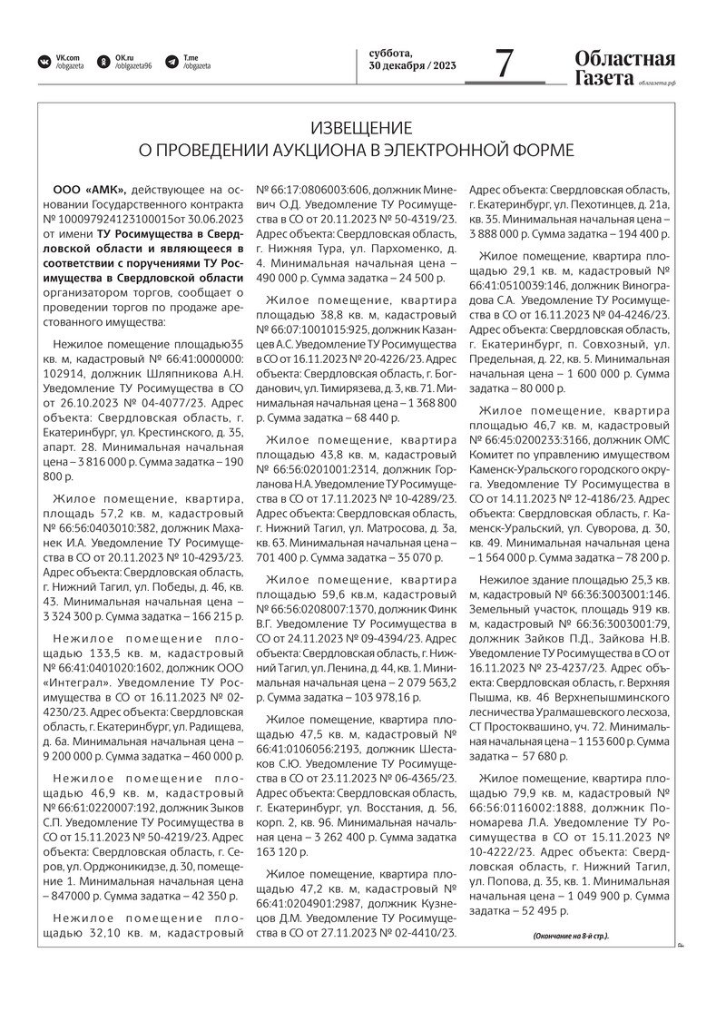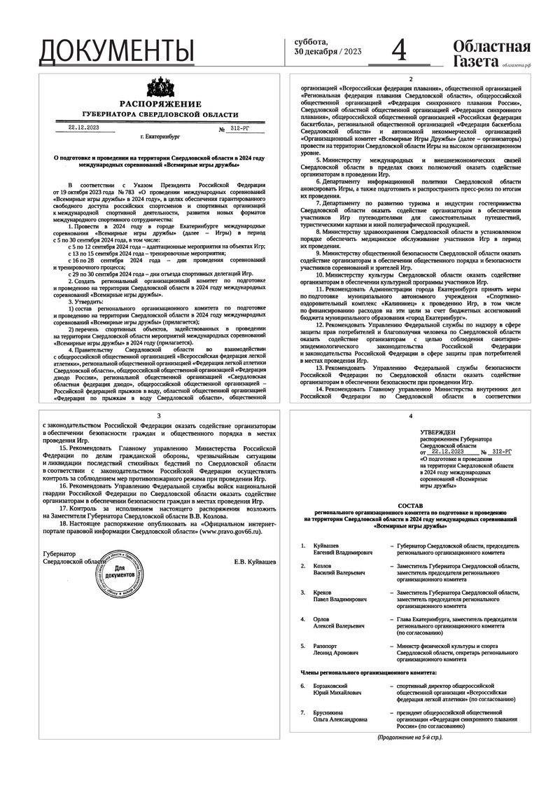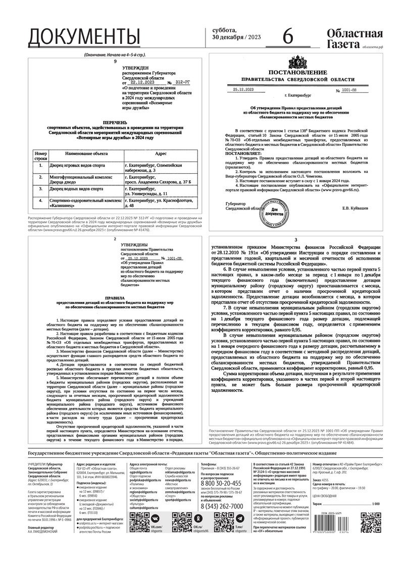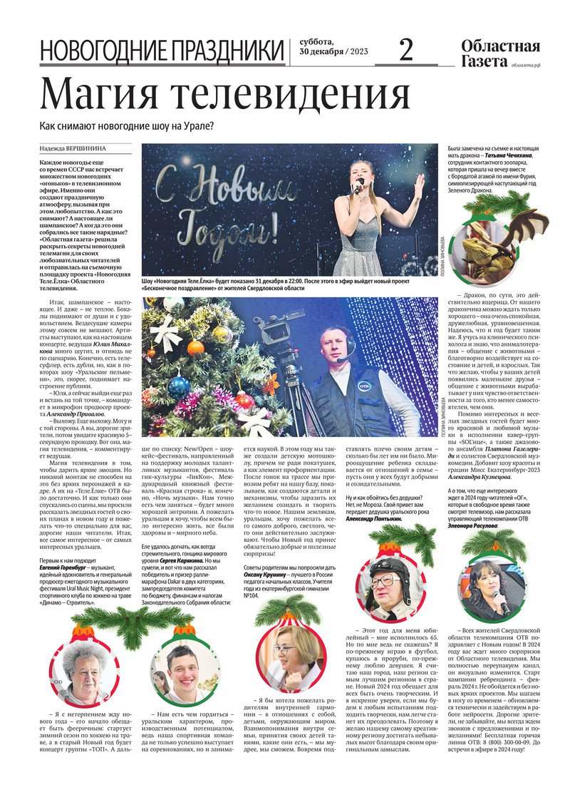 «Областная газета» № 296 (9811) от 30 декабря 2023 года