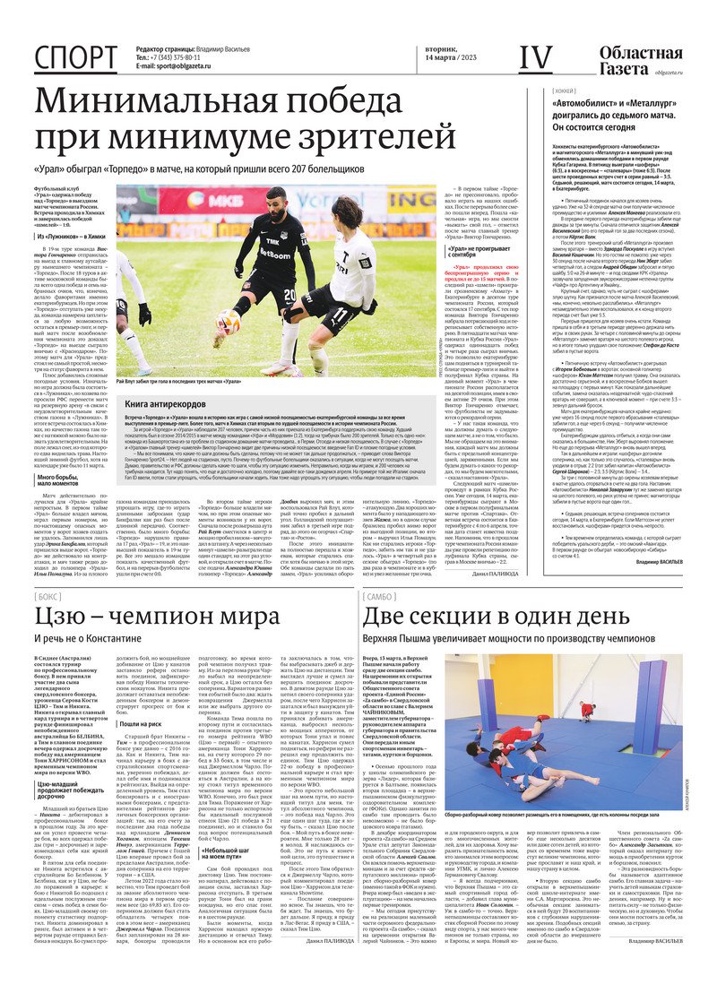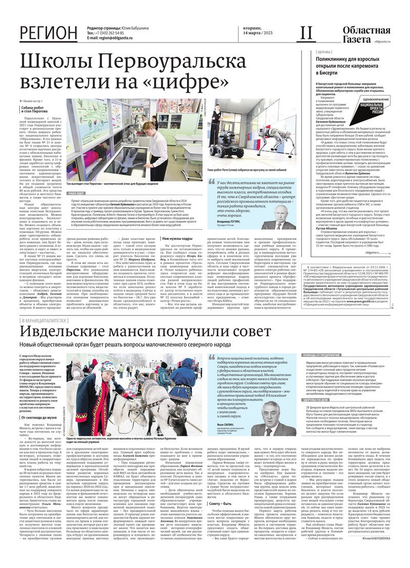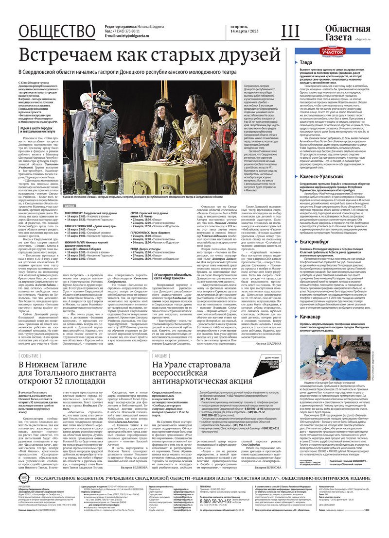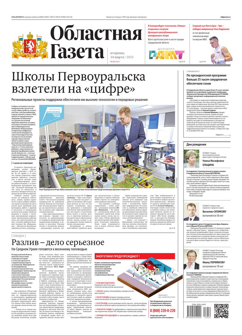 «Областная газета» № 52 (9567) от 14 марта 2023 года