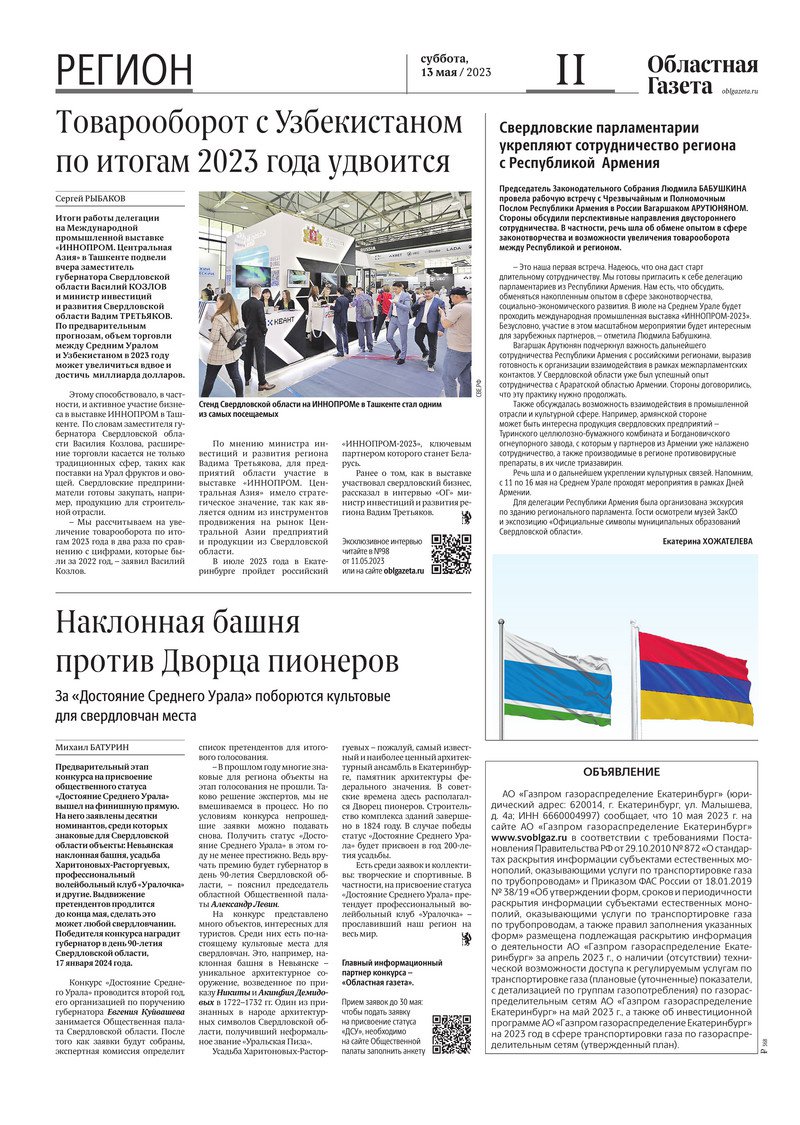 «Областная газета» № 101 (9616) от 13 мая 2023 года