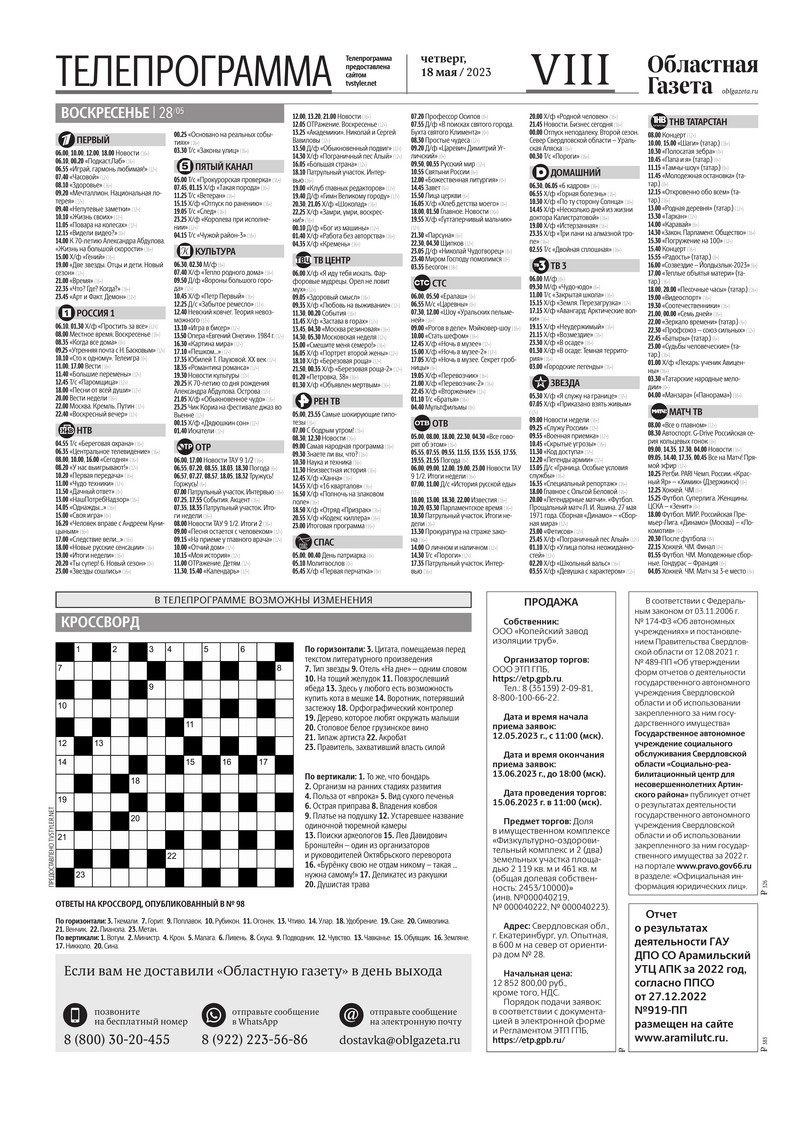 «Областная газета» № 104 (9619) от 18 мая 2023 года