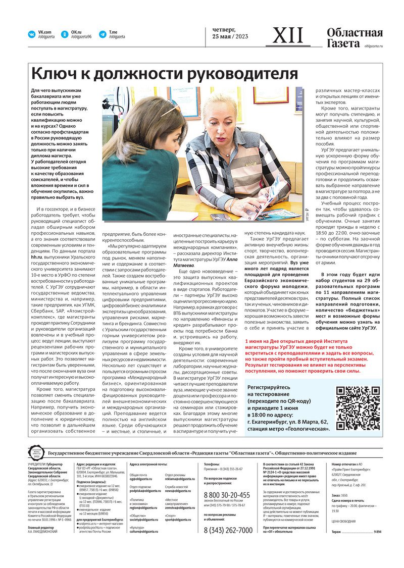«Областная газета» № 110 (9625) от 25 мая 2023 года