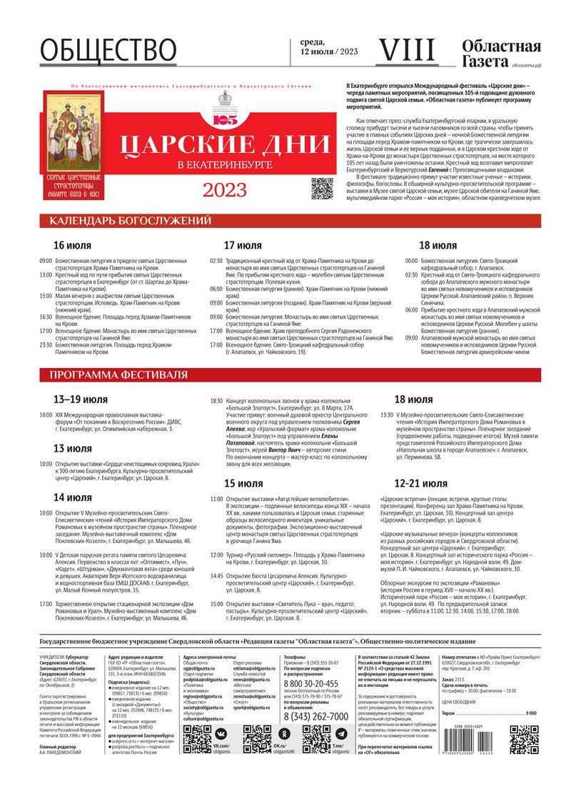 «Областная газета» № 150 (9665) от 12 июля 2023 года