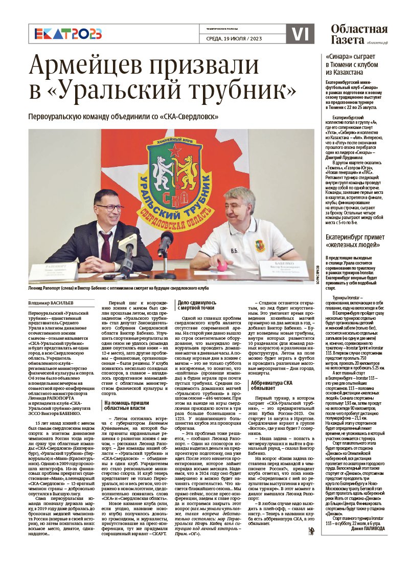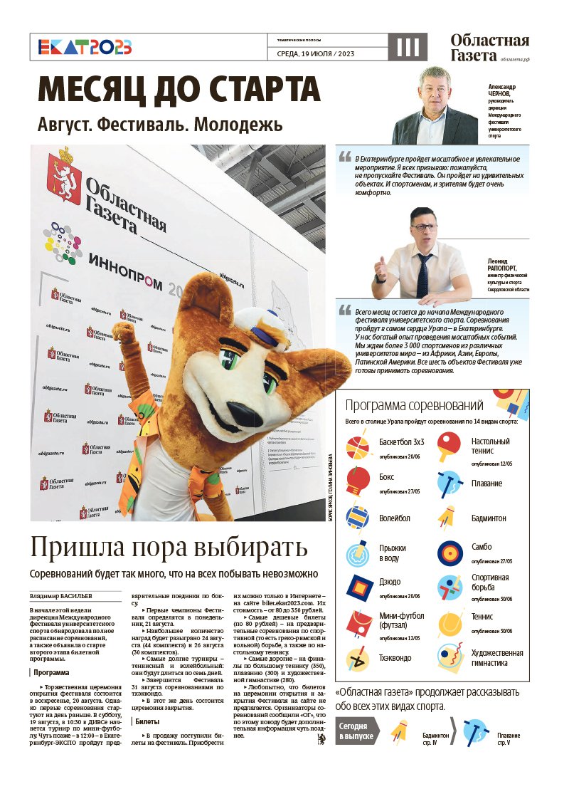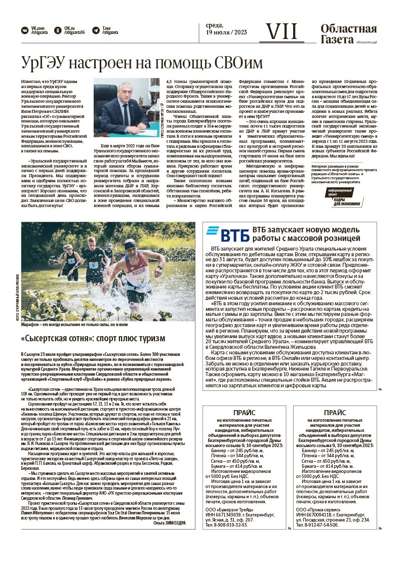 «Областная газета» № 156 (9671) от 19 июля 2023 года