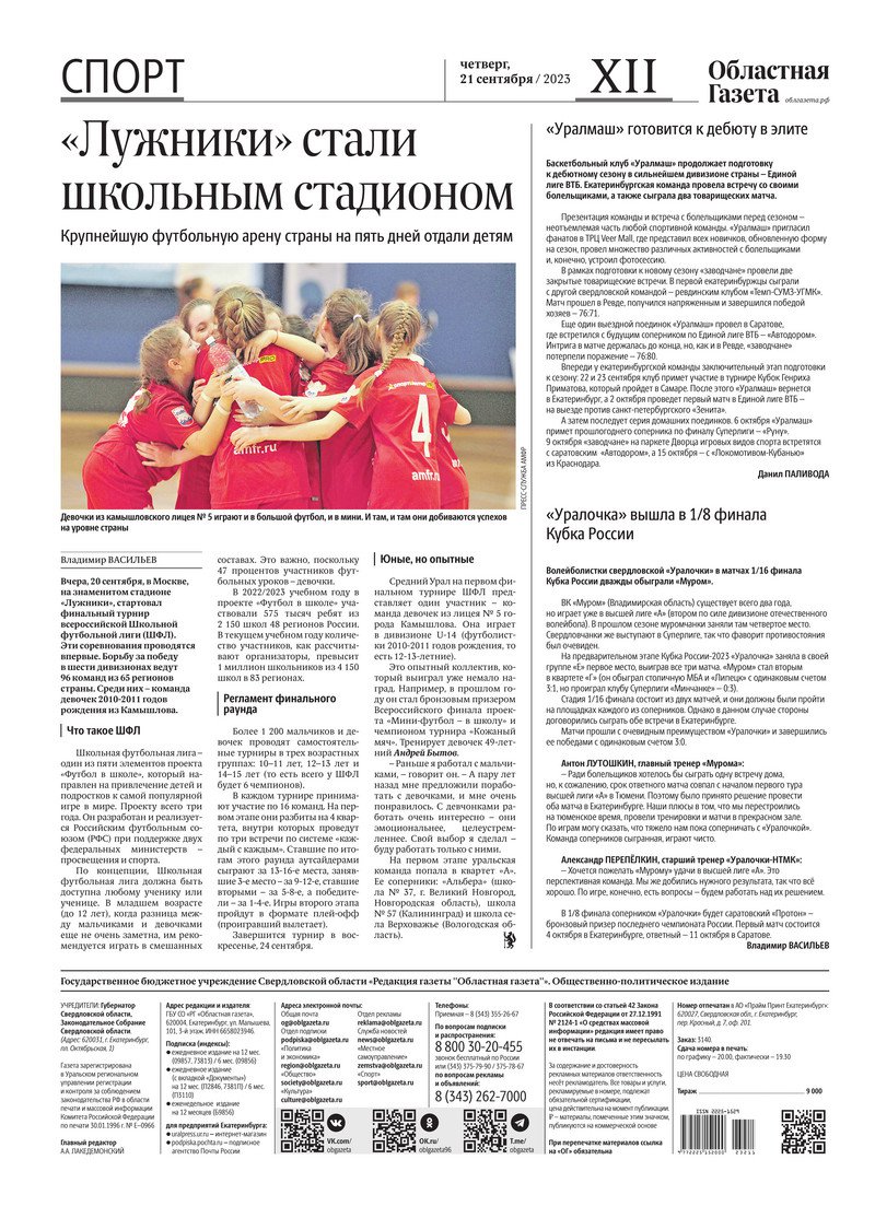 «Областная газета» № 211 (9726) от 21 сентября 2023 года